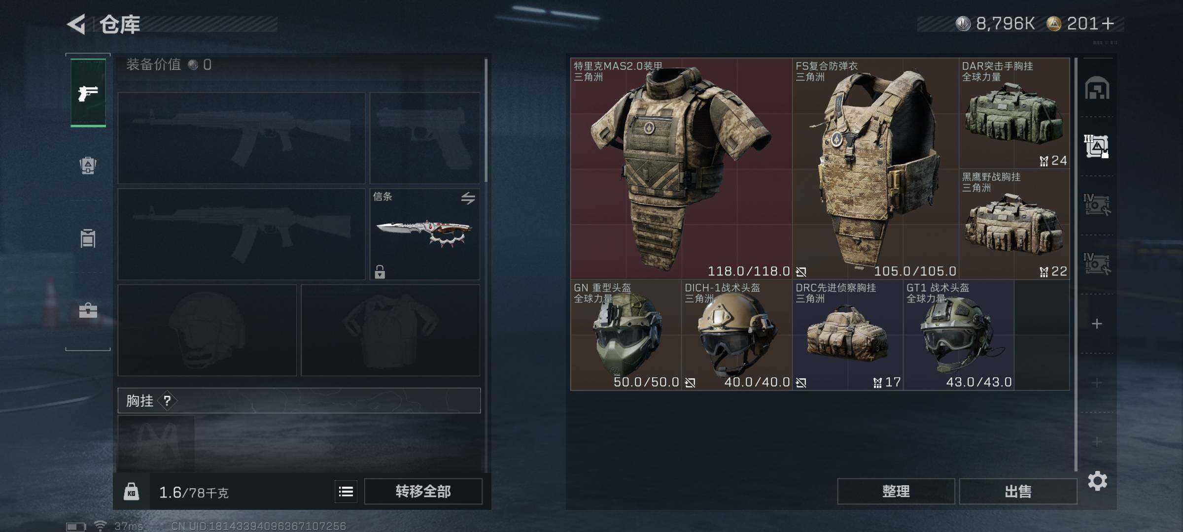 总资产(M):91M/哈夫币(K):8796K/哈夫币(K):8796K/全面战场等级:27_段位: