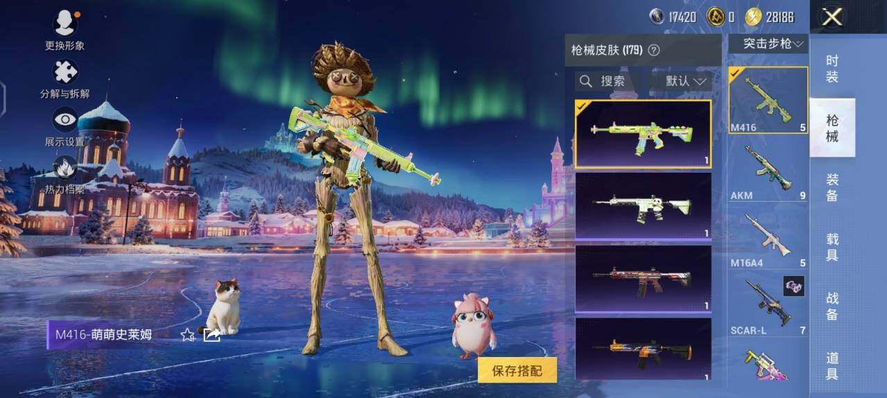 【粉色枪皮等级】:AKM-绿萝繁花(五级),AUG-暖羊咩咩(五级),Kar98K-巳巳如意(五级),MK1