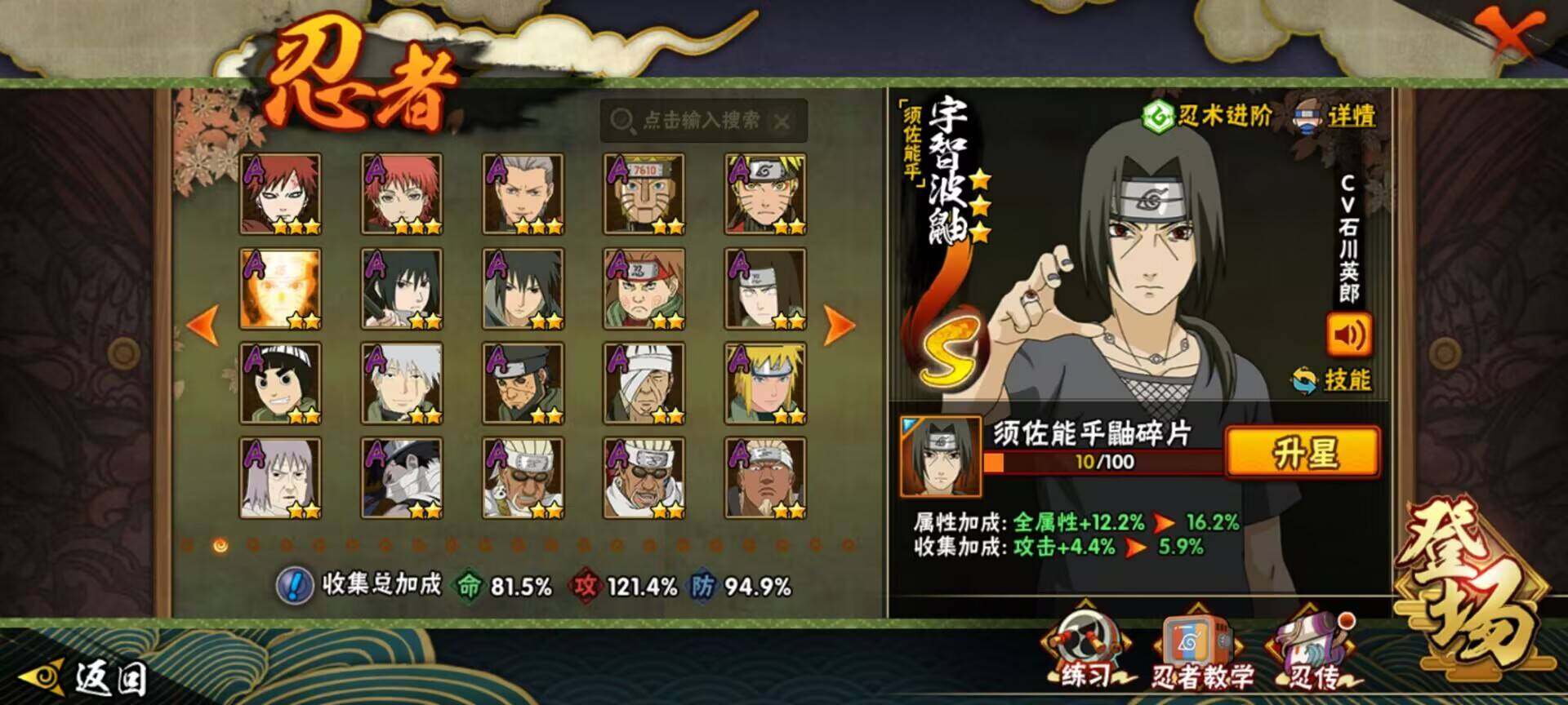 【HYZ2894】V10/战力909W/S忍17/A忍36/2星大野木「侠隐江湖」/死司凭血-飞段/5星猿飞阿斯玛/须佐能乎-旗木卡卡西/3星蝎/秽土转生-猿飞阿斯玛/5星迈特凯/忍界大战-奇拉比/大筒木桃式/六代目水影-长十郎/2星蝎「绯流琥」/2星桃地再不斩「秽土转生」/死门-迈特凯/3星自来也「传说中的三忍」/四代目土影-黑土/2星神农「羁绊」/忍界大战-春野樱/志村团藏/九尾查克拉-漩涡鸣人/不缘/晓-大蛇丸/忍界大战-日向宁次/宇智波鼬/永恒万花筒-宇智波佐助/秽土转生-宇智波鼬/青年