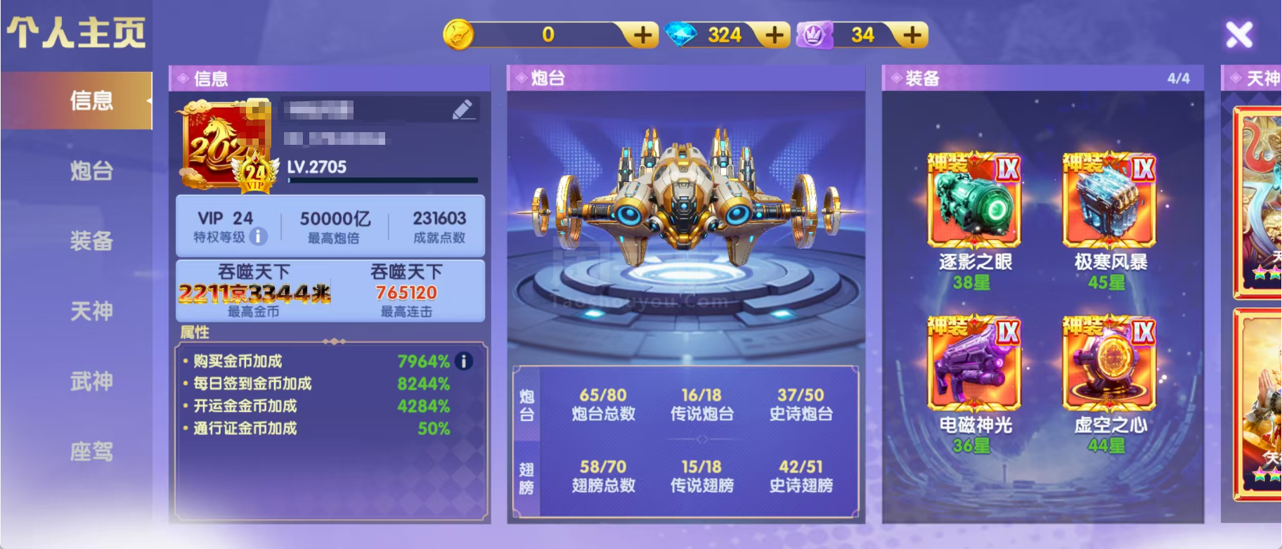 官方顶配可换绑 V24 加成7964 返点券翅膀满 天神全满 武神全红 座驾全开 优惠出