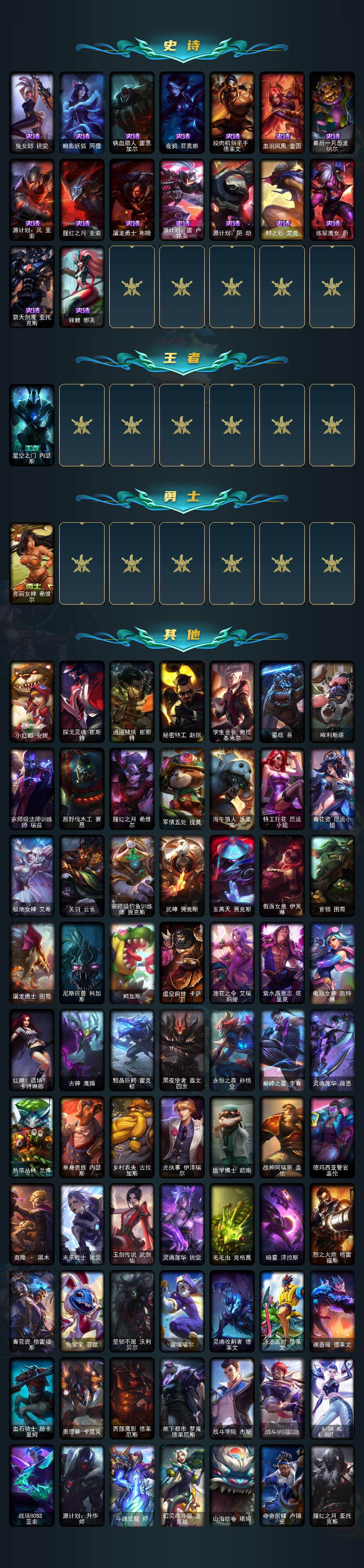 172英雄/174皮肤/2终极/27限定/1臻彩/33炫彩/34传说/37史诗/白银