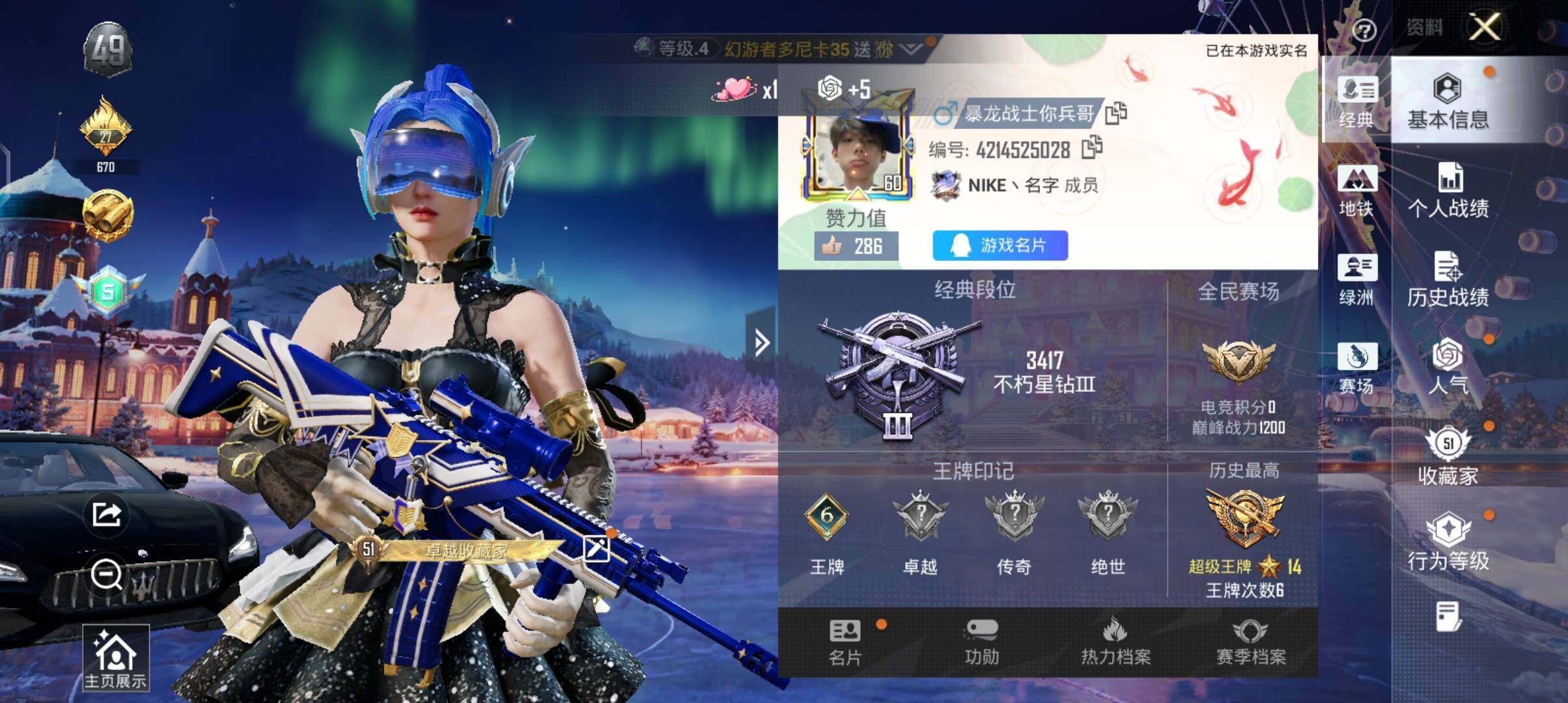 【A1329】安卓 【载具号 梦幻火箭/SCAR-L-青春物语(六级)/路特斯EVIJA(星际黄)/路特斯ELETRE(冰川蓝)】手Q-2粉装-4特效枪-3载具-1粉色飞行器-42193热力值-6王牌印记-73套装-121枪皮