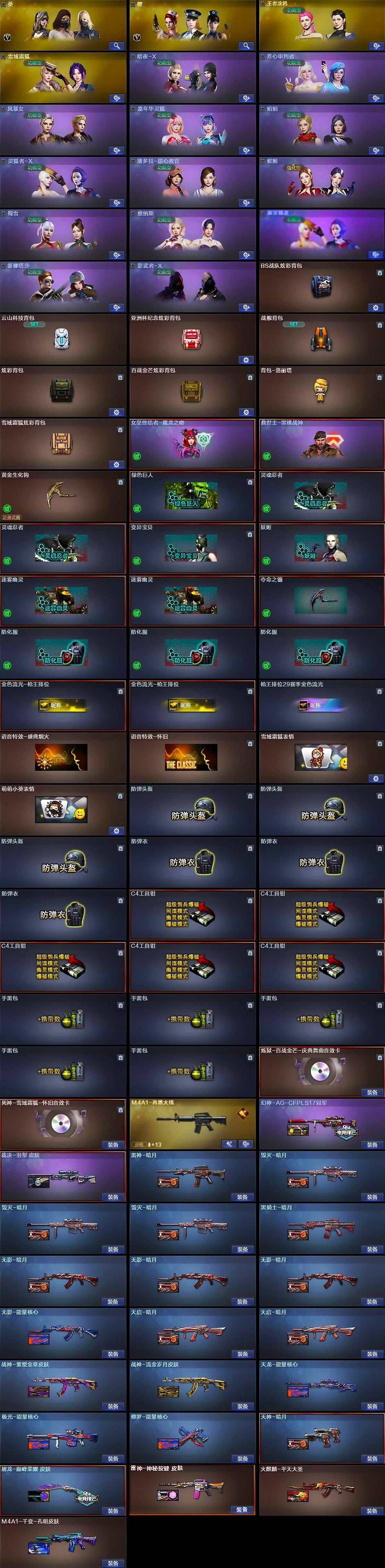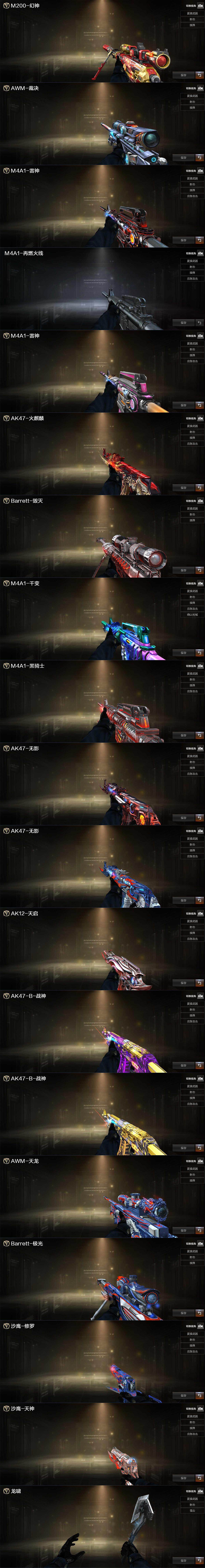 【皮肤】:幻神-AG-CFPLS17冠军,裁决-羽掣 皮肤,雷神-暗月,M4A1-再燃火线,雷神-神秘按键 皮肤,火麒麟-平天大圣,毁
