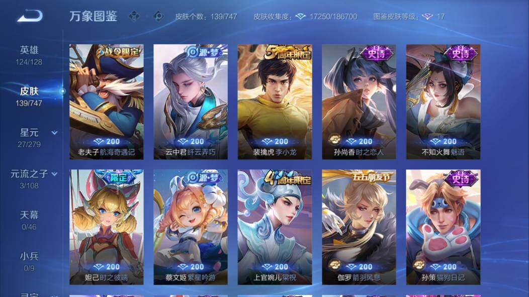 /安卓Q-V6-125英雄-139皮肤-3传说-38史诗 孙尚香乘龙问璇玑,马超无双飞将,小乔音你心动 妲己时之彼端