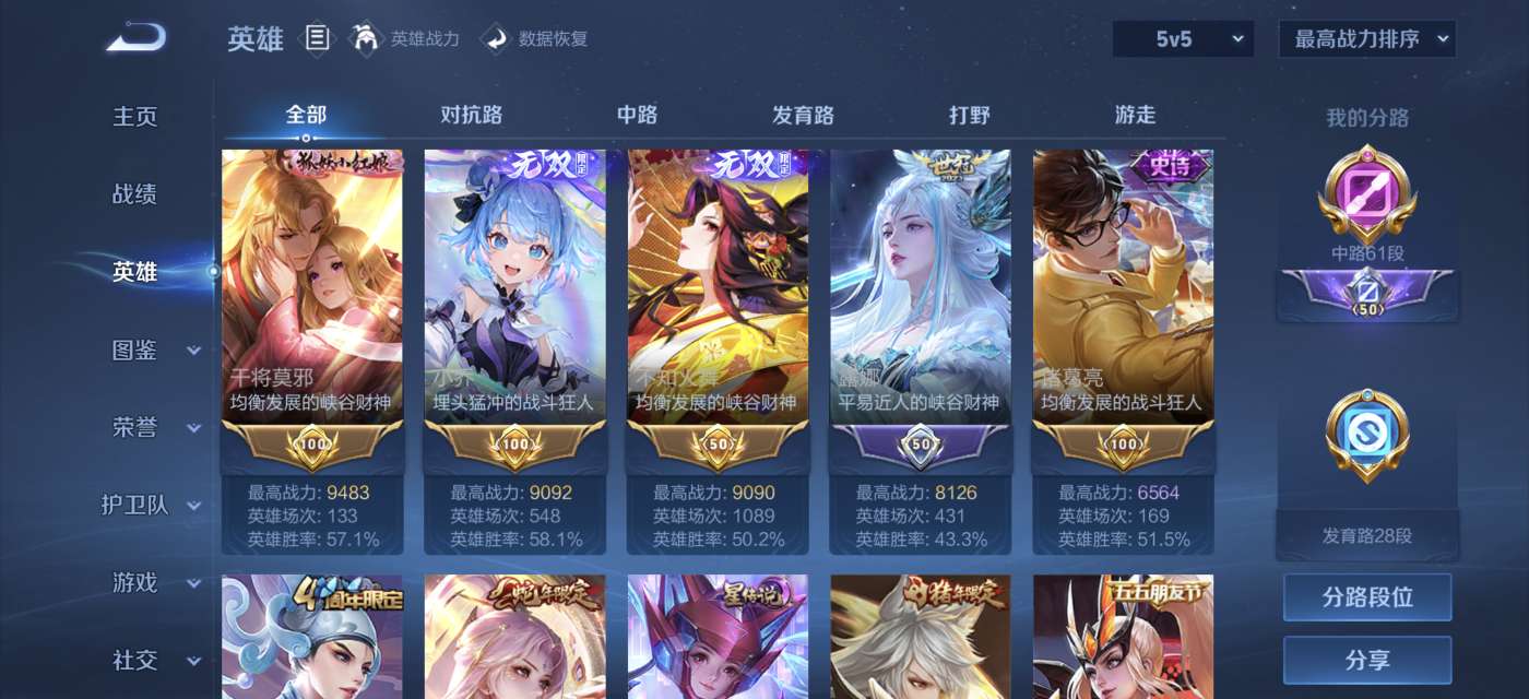 巅峰赛万强,10大金标,还有很多小村标,排位120星⭐️左右,买回去以后还可以找我帮打,超多中路皮肤