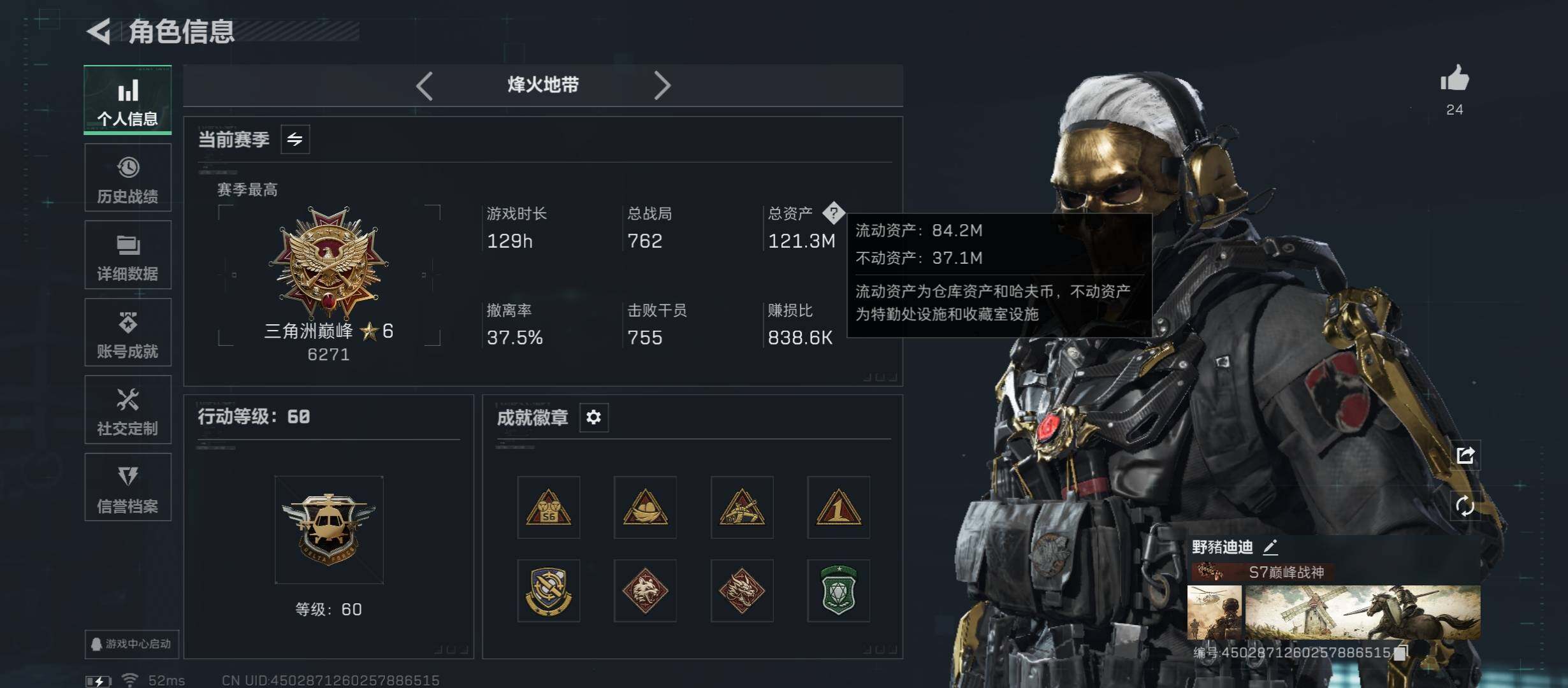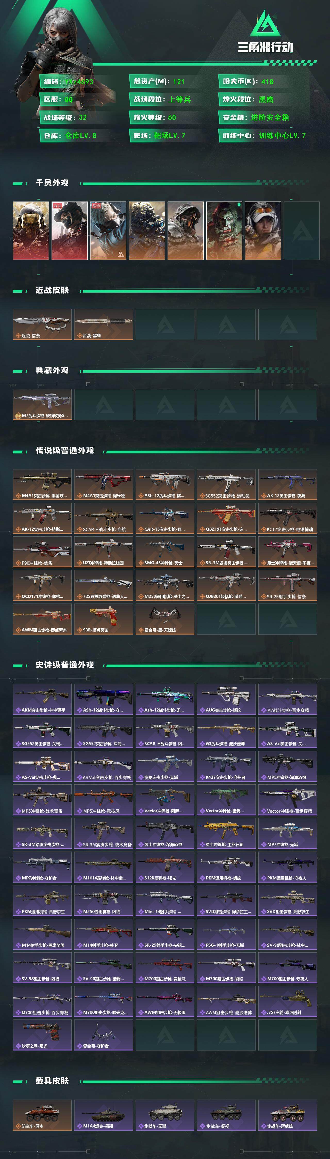 【Q区三端互通】【无二次】YXz4693-特勤处:仓库8级/靶场7级/训练中心7级-总资产121.3m-哈夫币41w-烽火等级:60级