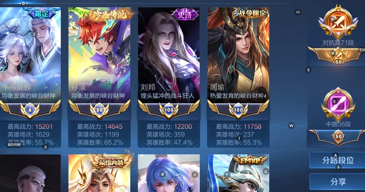 0AOJVS可二次国服干将国服孙策国服刘邦国服周瑜对抗路71段中路56段打野51段游走41段1130