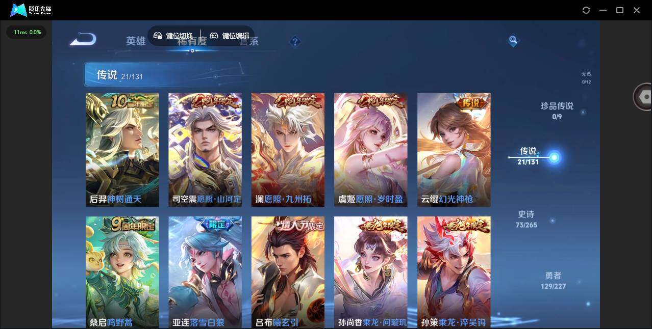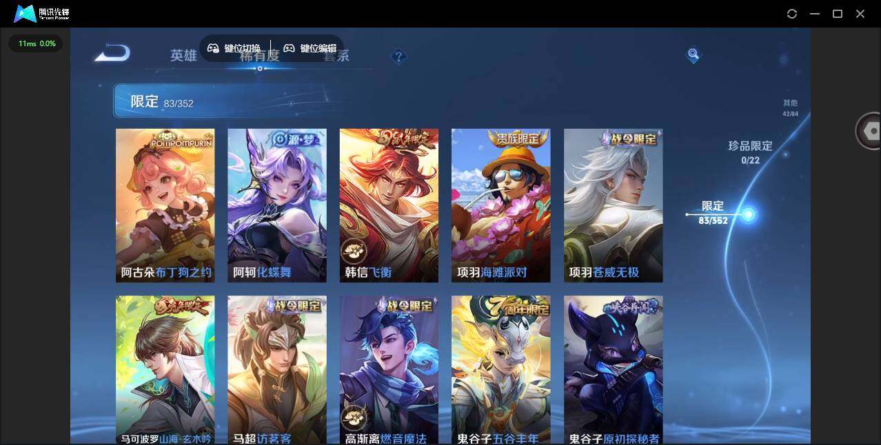 1831251 年限皮肤多 安卓Q-V8-至尊星耀IV段位-126英雄-265皮肤-21传说-73史诗