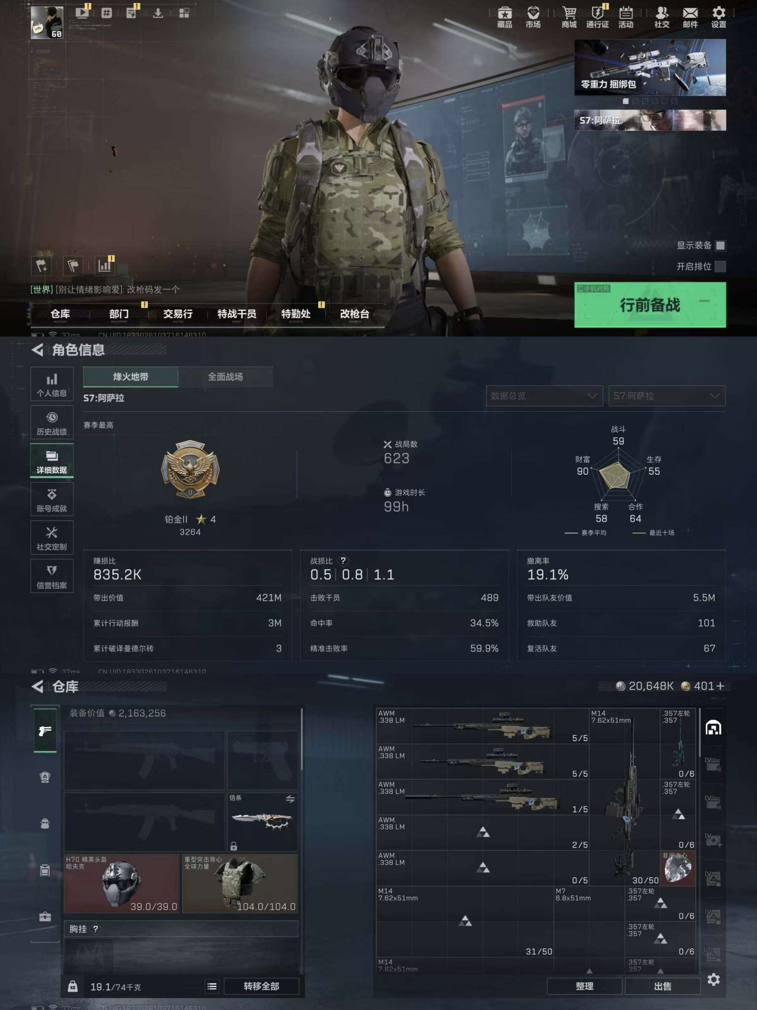 20648k哈伏币-248m流动资产-60烽火等级-铂金-46战场等级-列兵