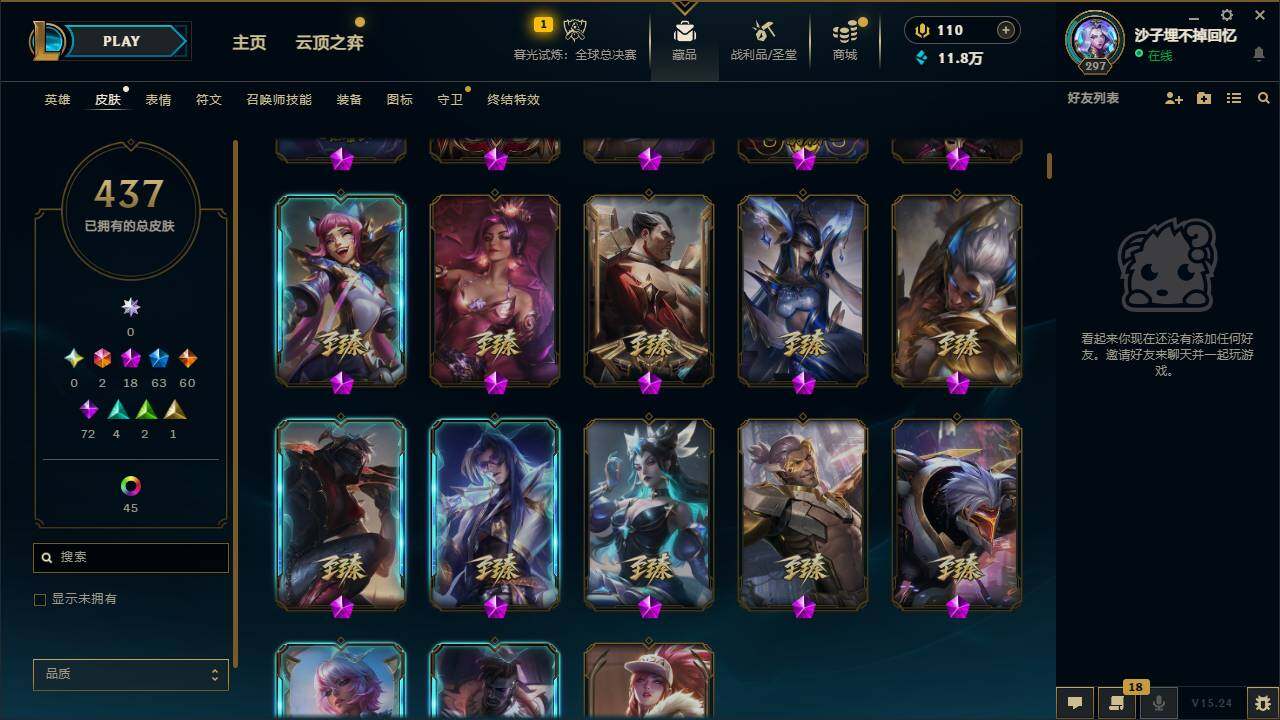 【LOLYT44】172英雄/437皮肤/2终极/18神话/63限定/14臻彩/104炫彩/60传说/72史诗/白银账号等级:297/至臻剪纸仙灵希维尔/至臻黑色玫瑰假面舞会卡特琳娜/至臻KDA阿卡丽/至臻西部魔影猎天使恶魔泰隆/至臻凯旋将军德莱厄斯/至臻青花瓷丽桑卓/至臻星之守护者辛德拉/至臻幻灵战斗猫金克丝/至臻源计划阴劫/至臻战斗学院奇亚娜/至臻源计划逆流塞拉斯/至臻心之钢永恩/至臻神龙尊者炎龙瑟提/至臻至高天奎桑提/天龙之子卡莎飞龙乘云/墨之影武者亚索金墨耀影/征服者韦鲁斯炫金/幻灵白鸽