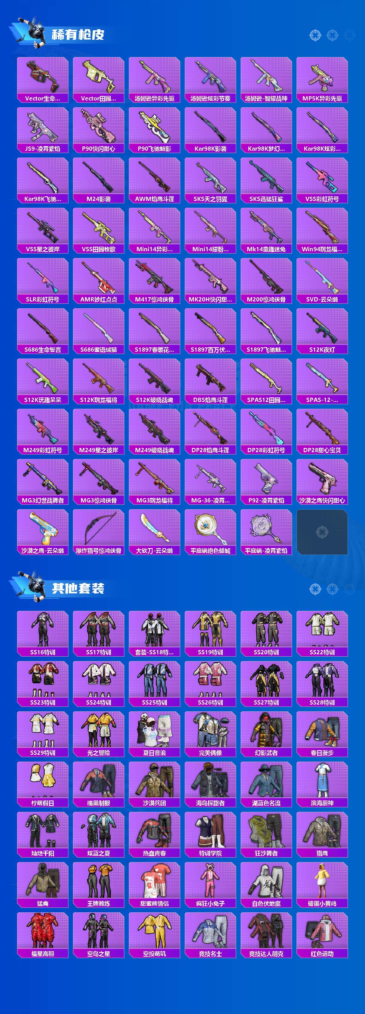 【A1031】苹果 【素材号 怪诞乔克/梦幻火箭/都市猎人/AKM-甜心宝贝(七级)】手Q-无敌战神框-9粉装-6特效枪-0载具-5粉色飞行器-65564热力值-18王牌印记-145套装-194枪皮