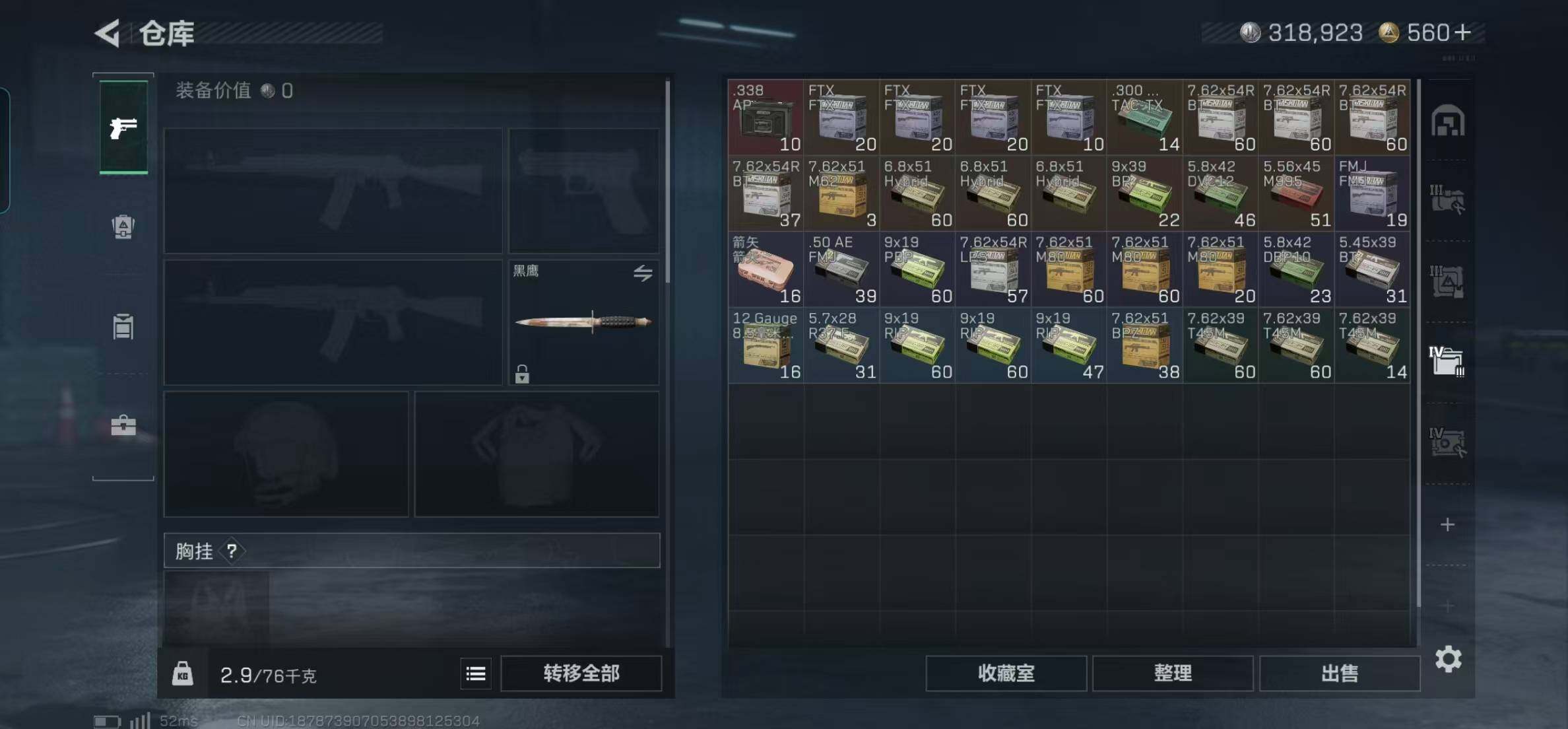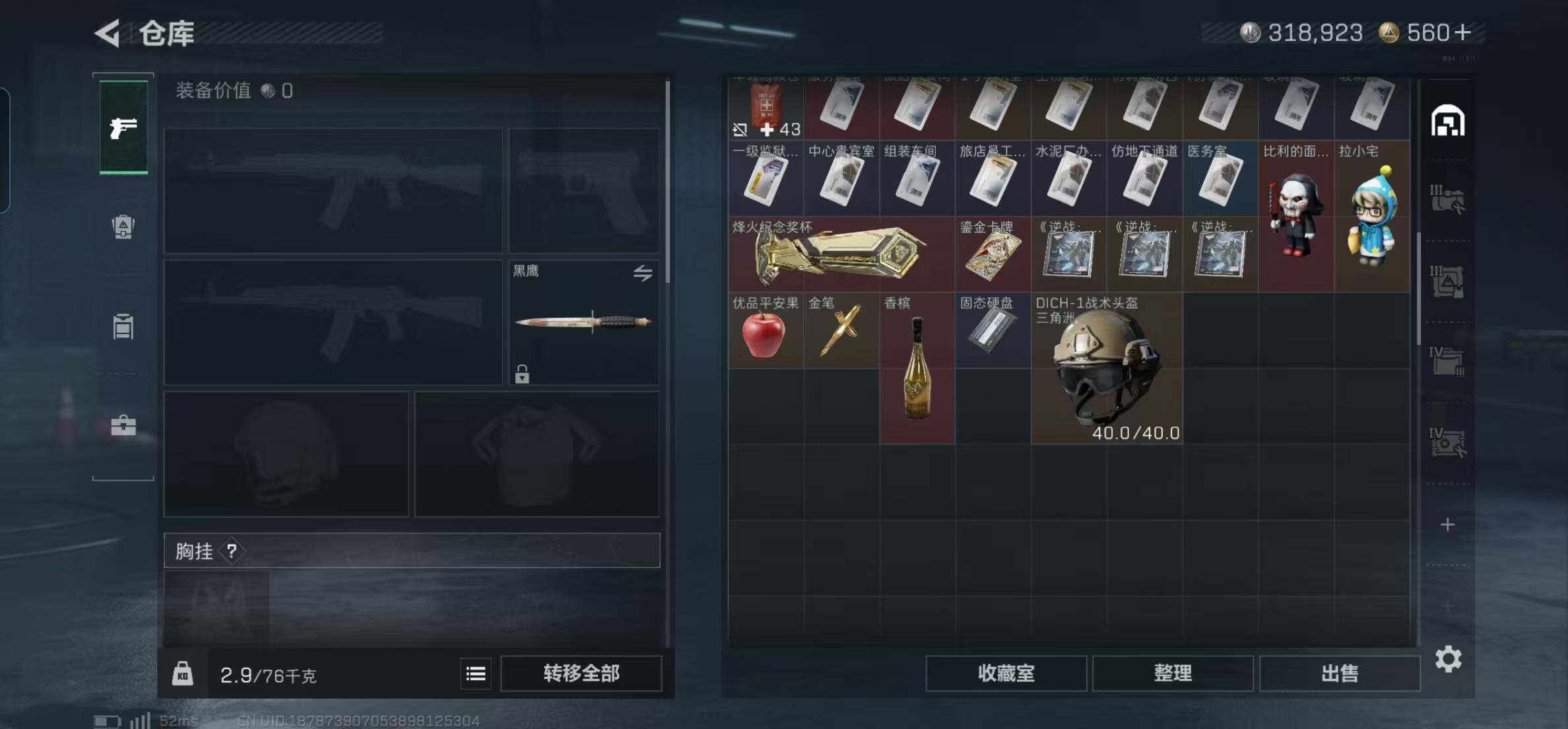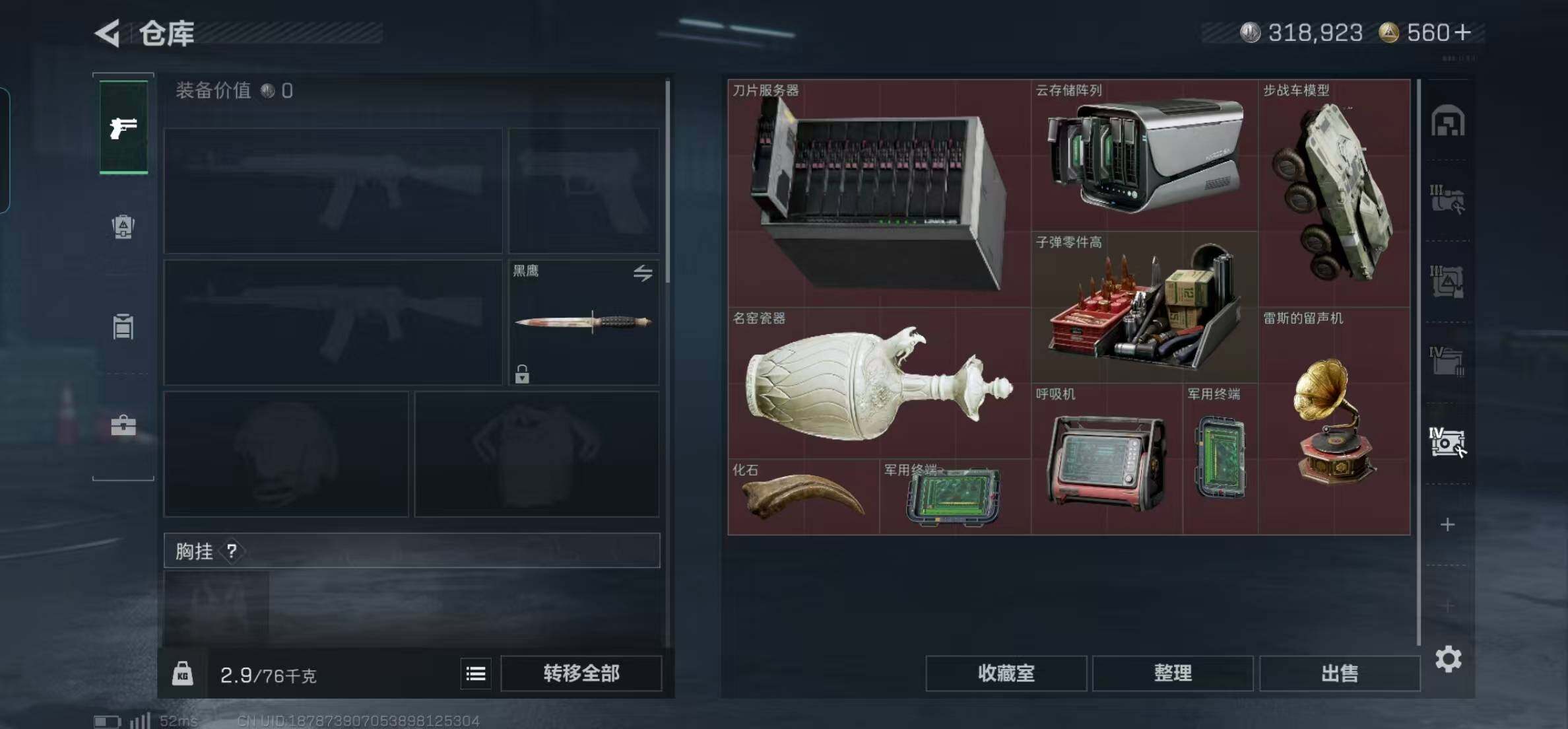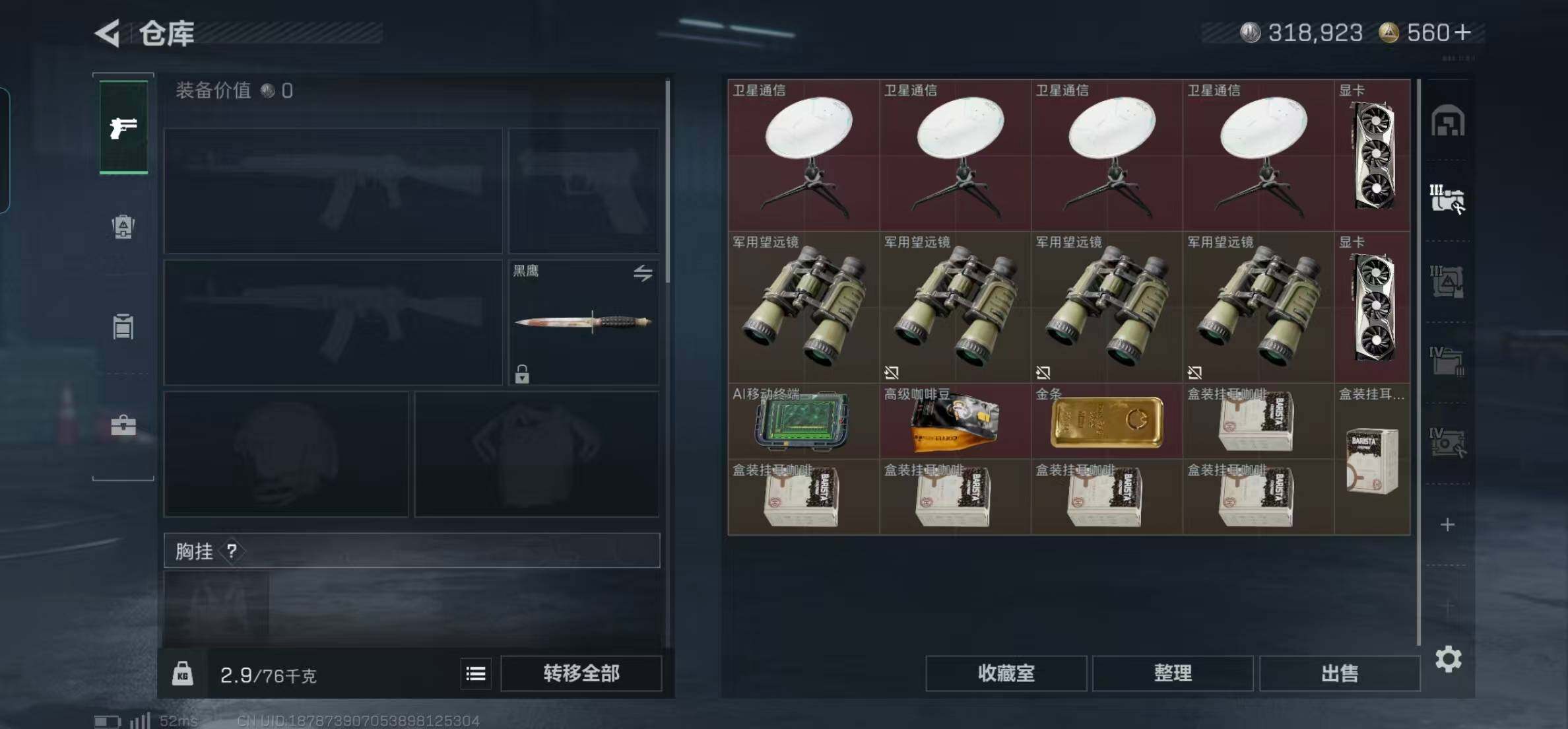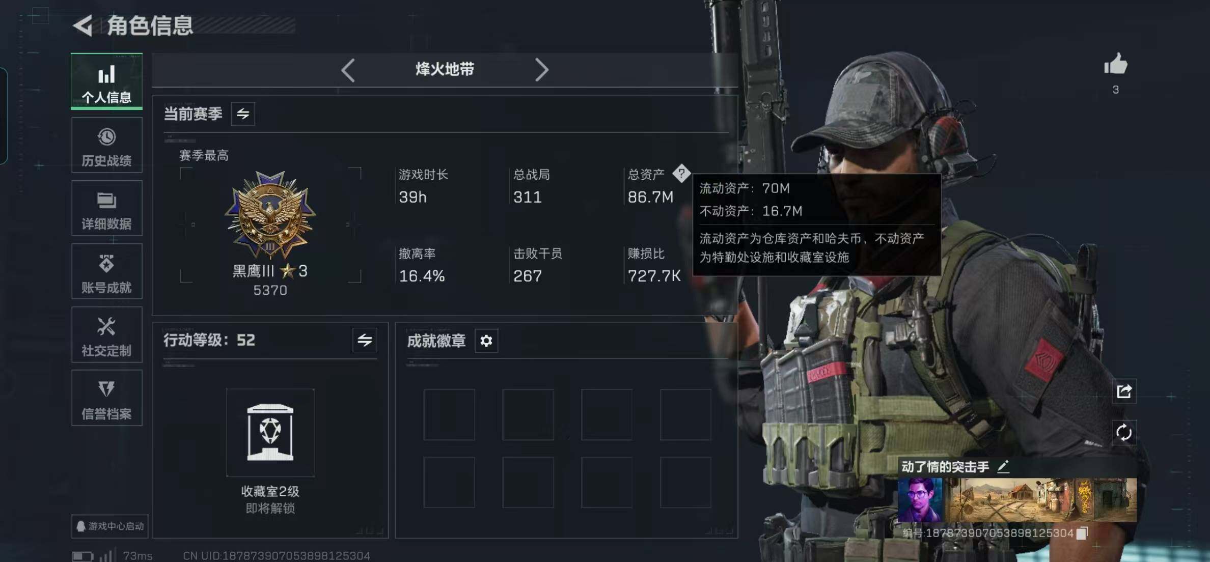 86m总资产-318k哈伏币-52烽火等级-黑鹰-1战场等级-无军衔【干员外