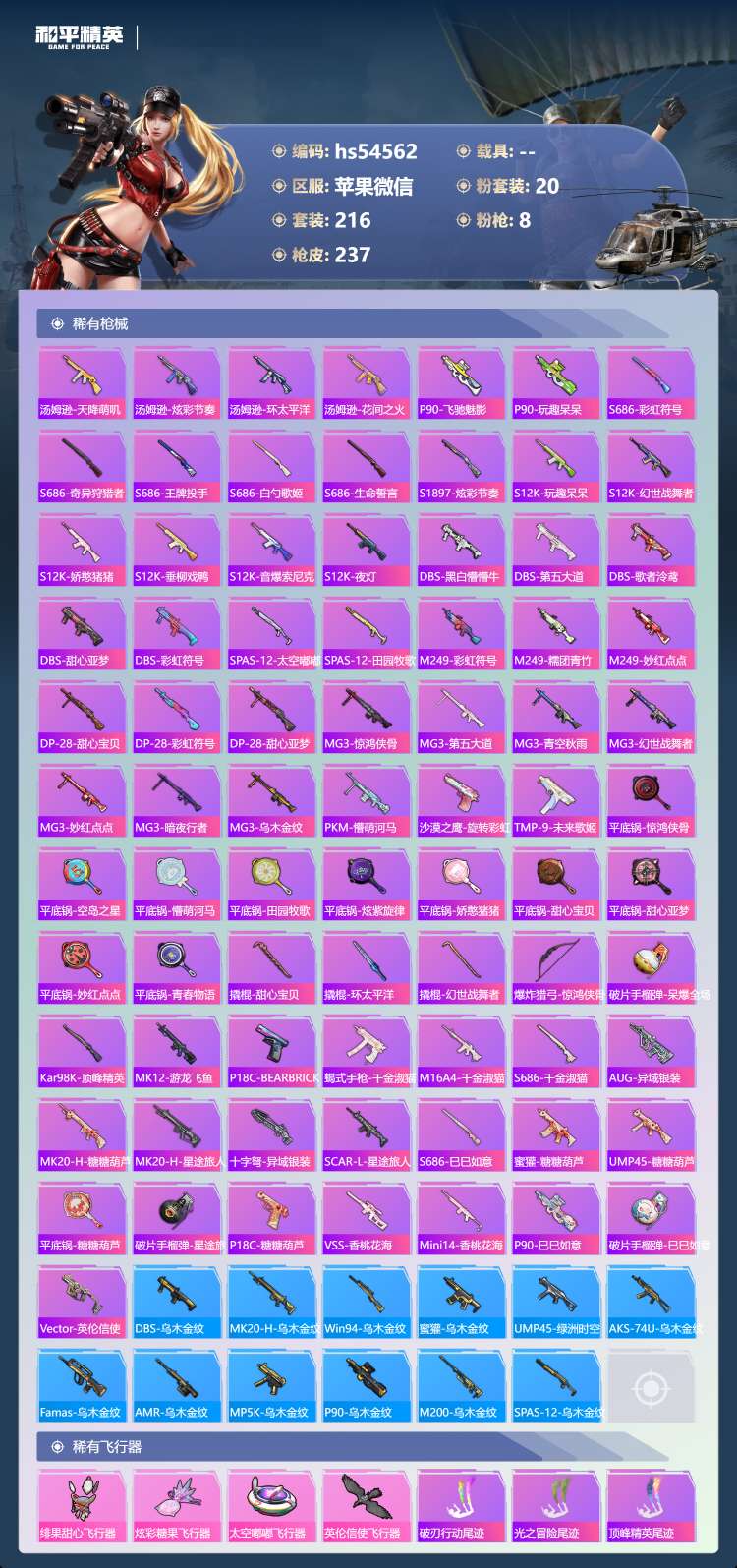 hs54562 苹果微-14王牌印记-20粉装-8特效枪-热力值-216套装-237枪皮