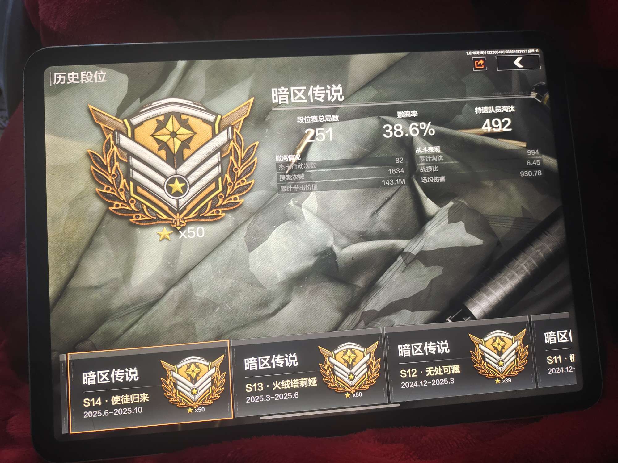 四把刀,两个金色皮肤,上过七次暗区传说50星