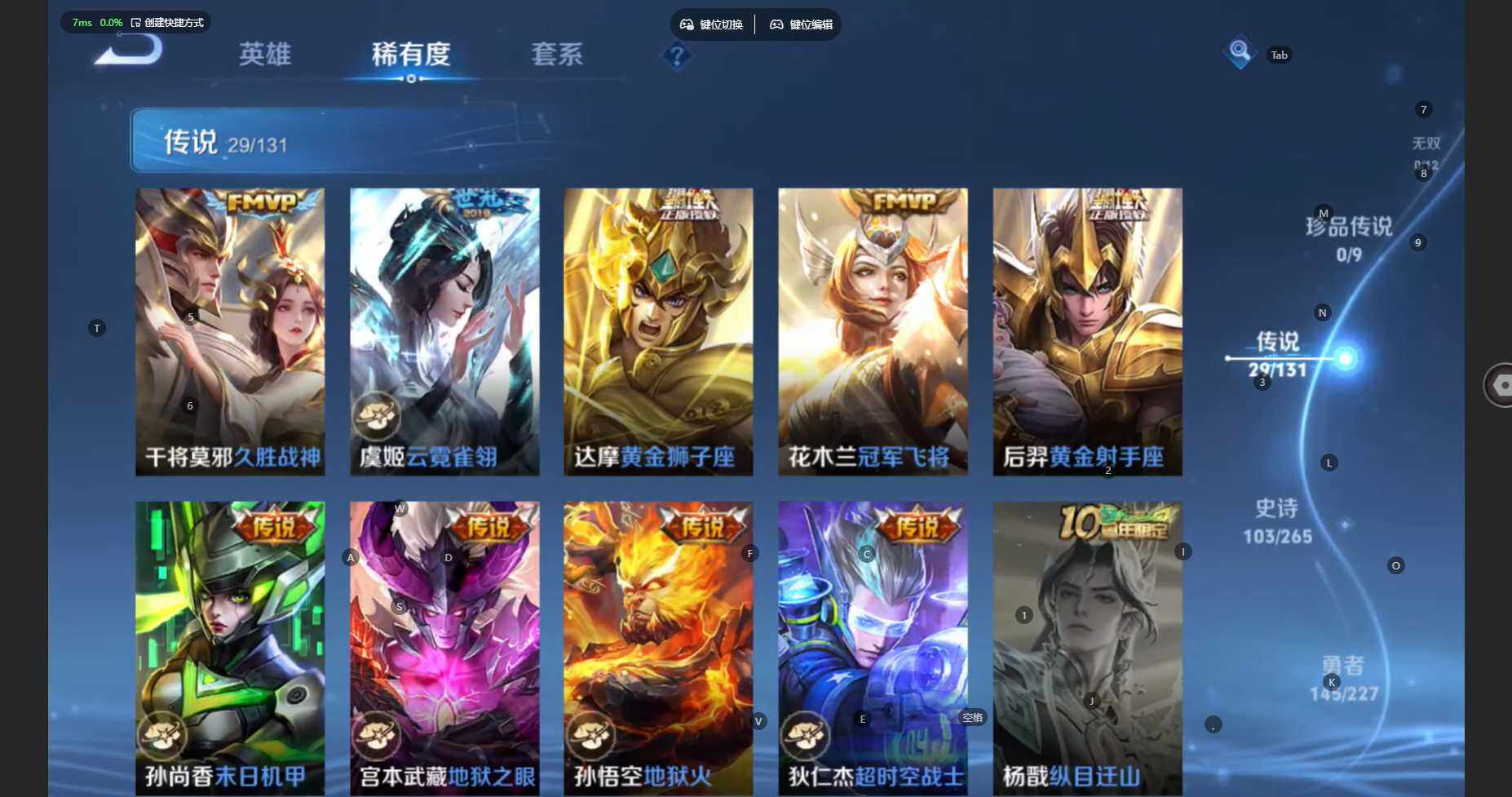 苹果Q-V9-最强王者段位-127英雄-360皮肤-2典藏皮肤-29传说-10