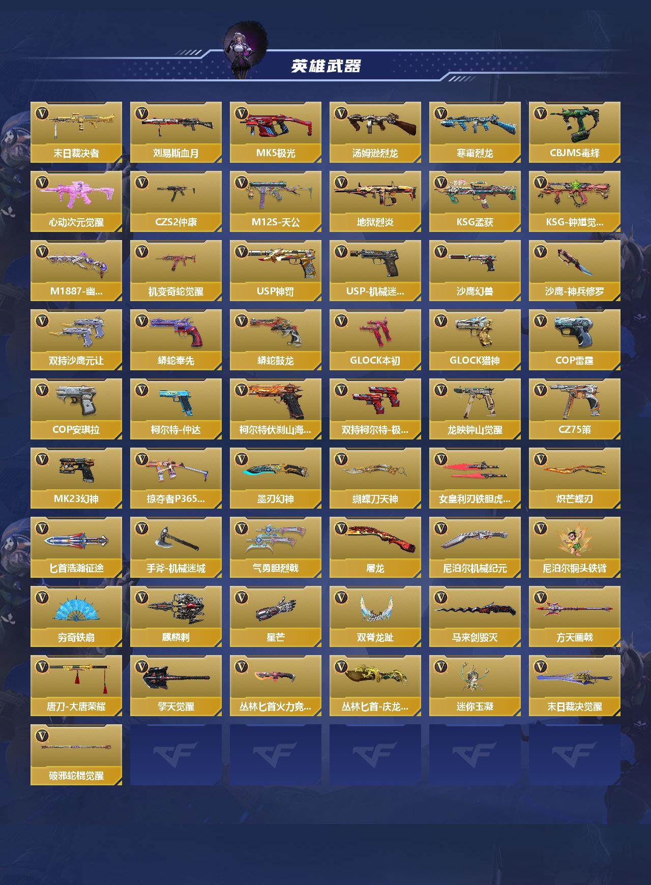 【CFMG994】VIP7/234V/仲达套/奉先套/王者之影/王者之魄/王者之心/王者之兽/王者之狱/王者之魂/王者之霆/王者之誉/KSG-孟获/81式-光明之神/MK47-仁德/M4A1-仲达/AK47-奉先/M4A1-星象/M4A1-游骑兵/TAC-慈/M200-幻神/AWM-妙才/COP 357-雷霆/CZS2-仲康/COP 357-安琪拉/AN94-盖/葵/瞳/关小雨/晴雅/九尾狐/炽天使-X/零-新生/AK47-无影/AK47-火麒麟/AK47-牡丹精灵/AK47-猩红传说/AK47