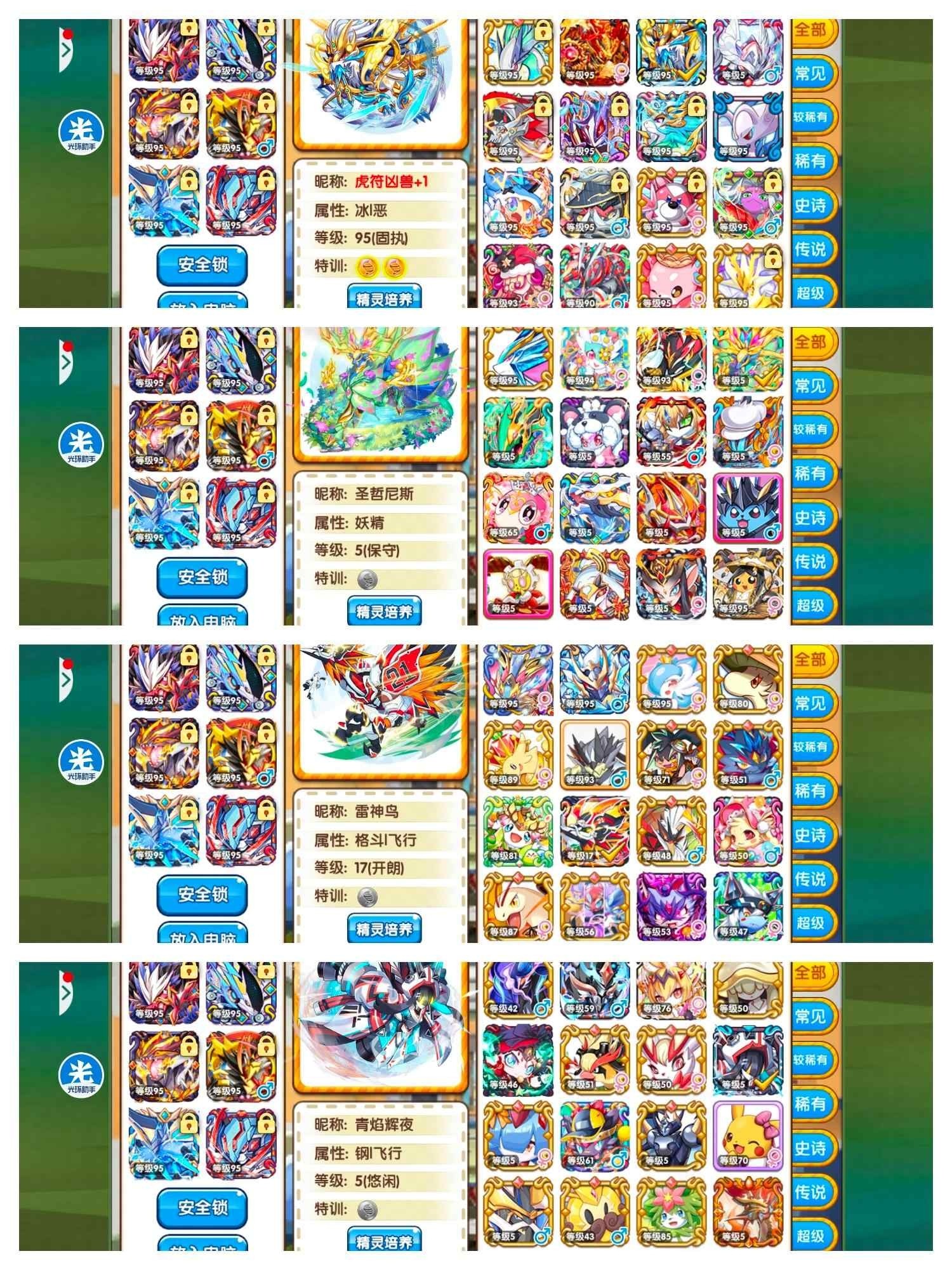 95级15个红一突破,还有82万钻石,团结密勒顿,故勒顿,闪光古拉顿,月核究极奈克洛兹玛,一击连击闪雄狮,奥特力,铁武者,闪月神,古剑豹,红莲凯骑,刃鬼,露莎蜜莱儿,小智路卡利欧,闪光蒂安希,闪光骑拉帝纳,新形态彩虹马,起源战兽,还有挺多稀有技能,超多礼盒,看图,绑定都能换