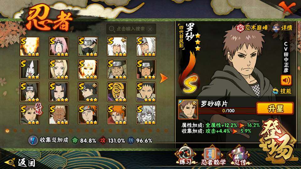【HYYH871】V11/战力960W/S忍20/A忍39/纲手/3星波风水门「九喇嘛连结」/五代目雷影-达鲁伊/死司凭血-飞段/5星猿飞阿斯玛/须佐能乎-旗木卡卡西/秽土转生-猿飞日斩/五代目水影-照美冥/3星蝎/5星迈特凯/忍界大战-奇拉比/四代目风影-罗砂/仙人模式-药师兜/六代目水影-长十郎/2星蝎「绯流琥」/2星桃地再不斩「秽土转生」/3星自来也「传说中的三忍」/恶灵之影-飞段/超-佩恩·天道/3星宇智波鼬/半蛇斗篷-药师兜/忍界大战-春野樱/忍界大战-我爱罗/迪达拉/九尾查克拉-漩涡