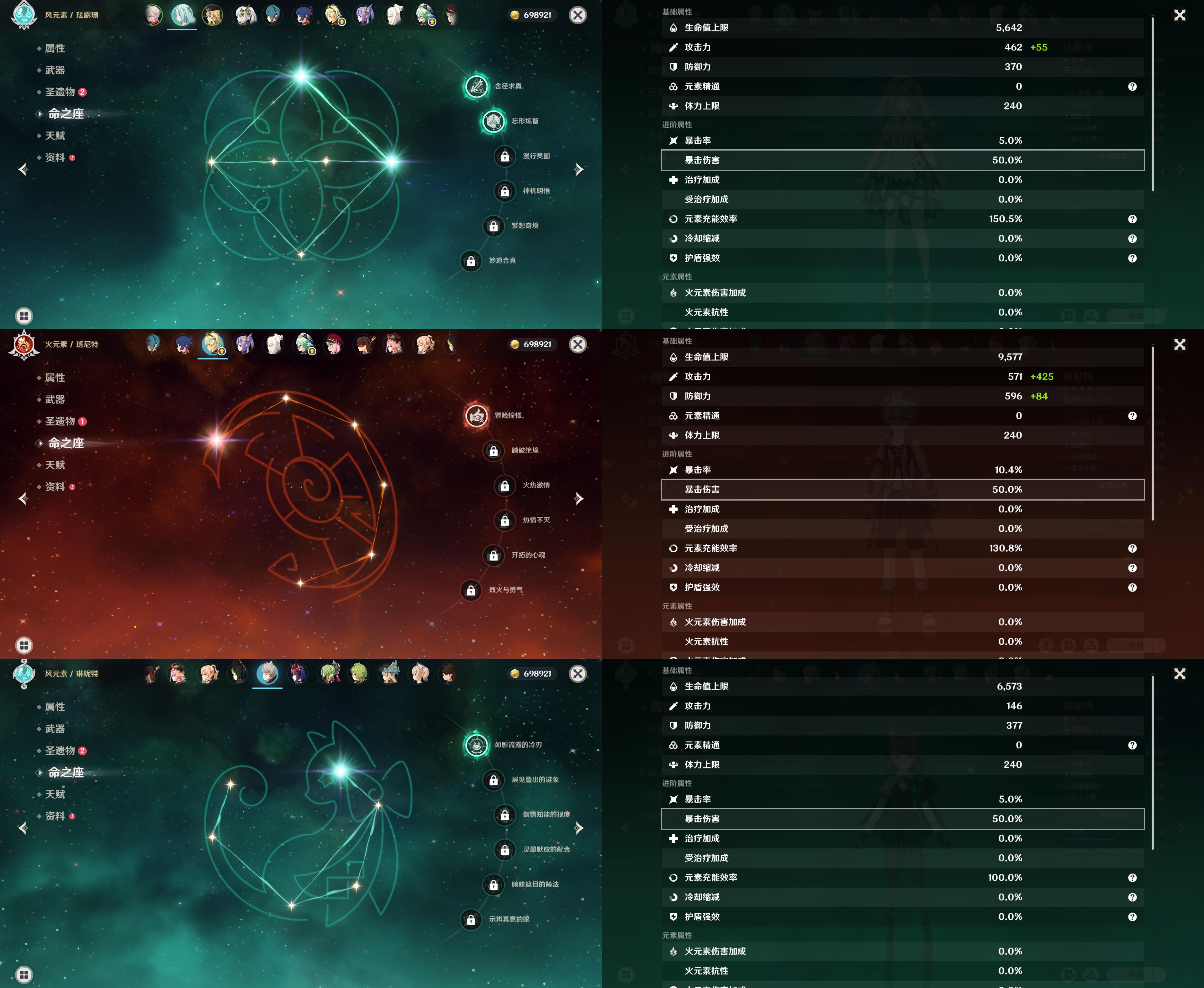 55级/11黄/女主/7个五星角色