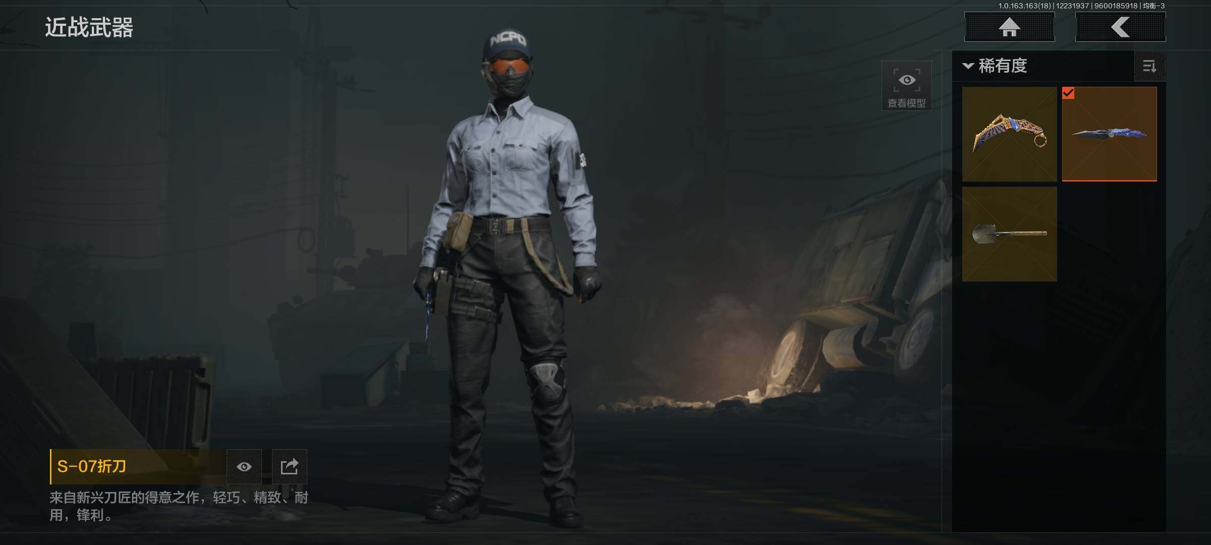 【近战武器】:工兵铲,S-07折刀,苍穹利爪