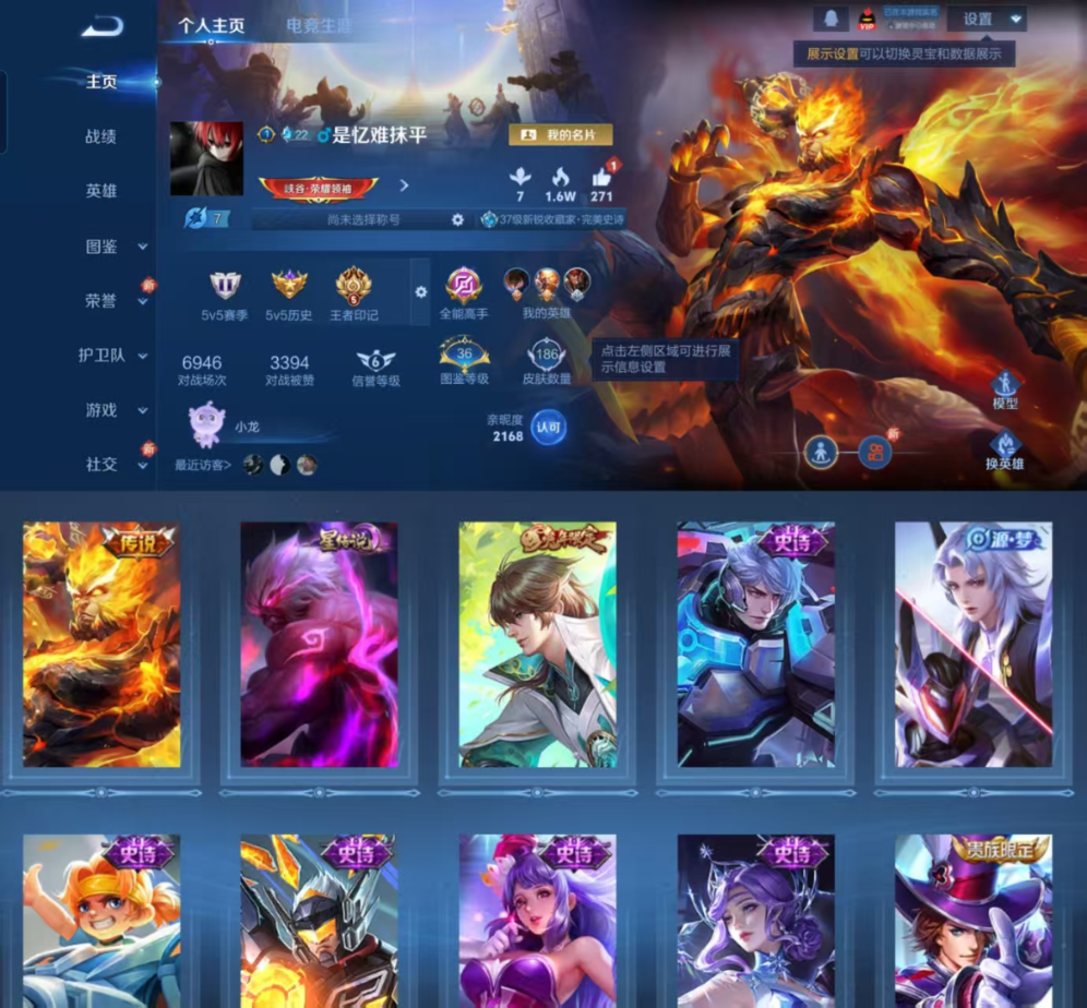 HXX1628【186皮肤1传说1星传说 33史诗54限定
