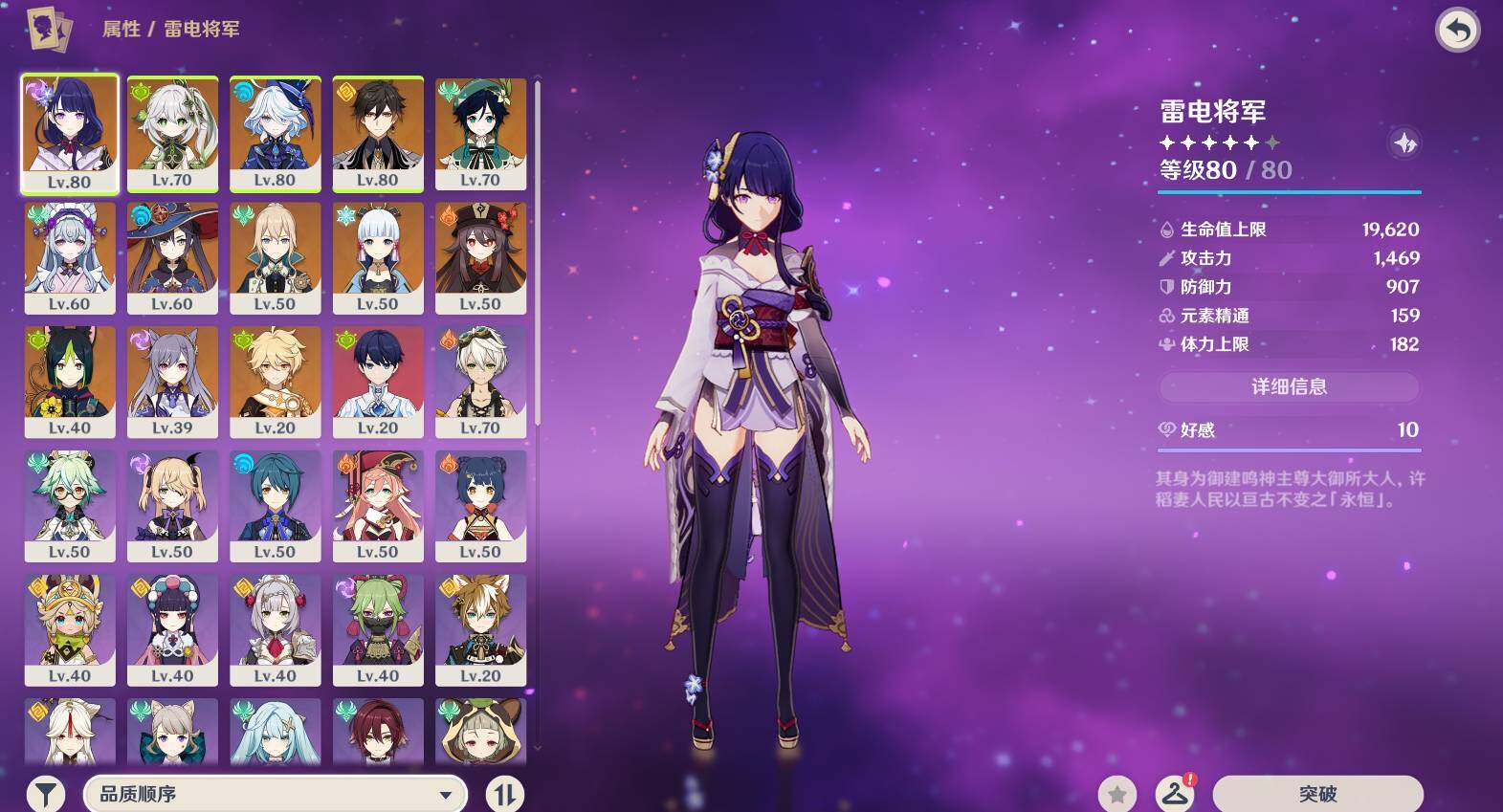 54级/女主/14个五星角色/梦见月瑞希/芙宁娜/纳西妲/1命提纳里/雷电将军