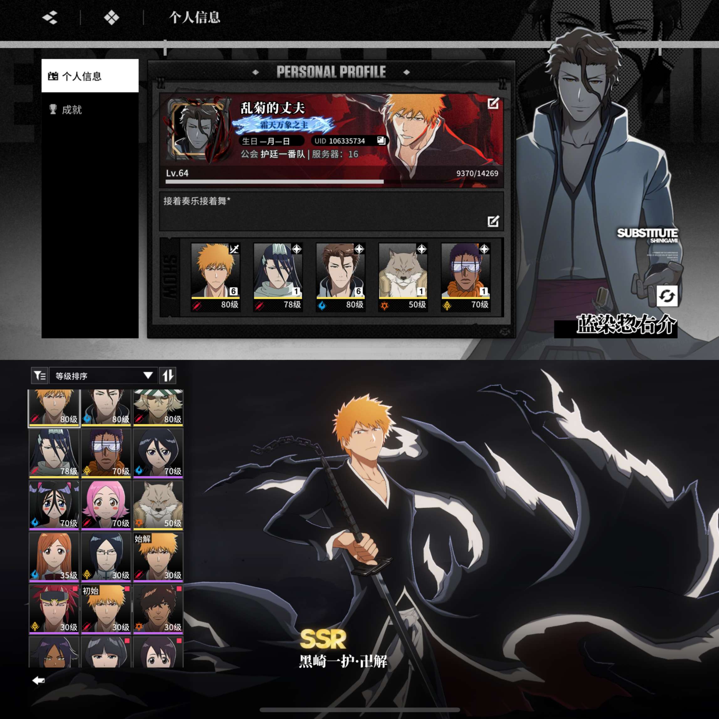 6命满命蓝染/一护645一护 610蓝染 151东仙要014店长 111白哉 112狛村0命