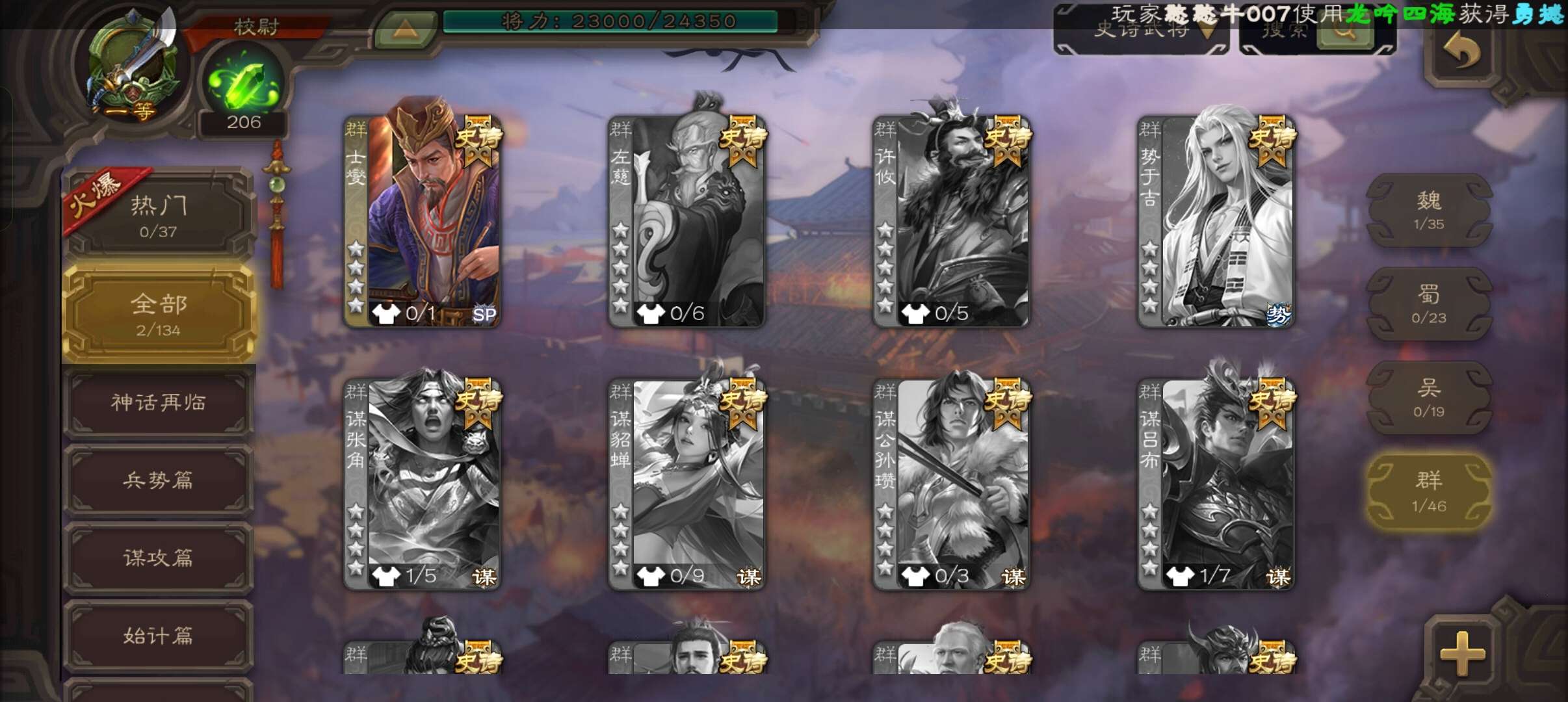史诗武将数量: