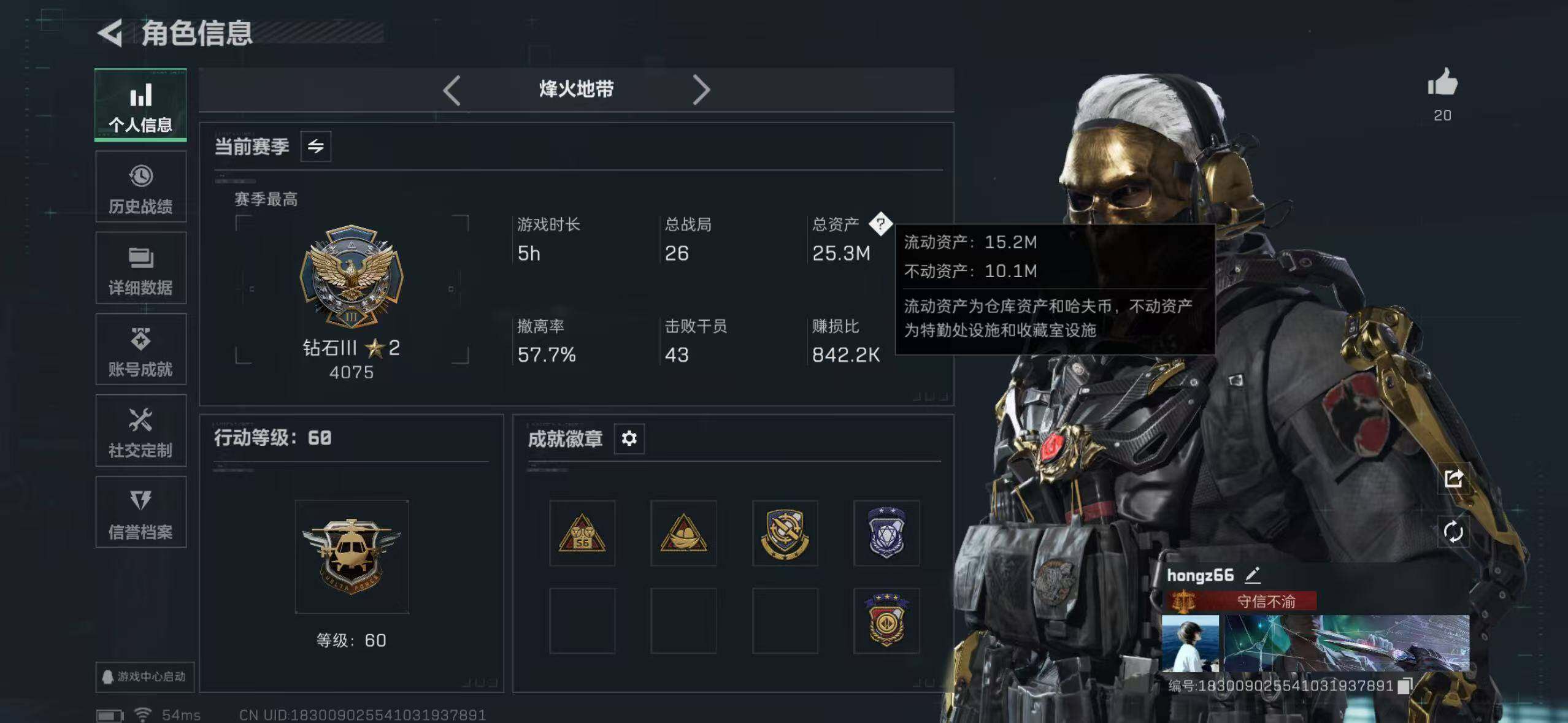 行动等级:60 总资产:25.3M 哈夫币:195.6W