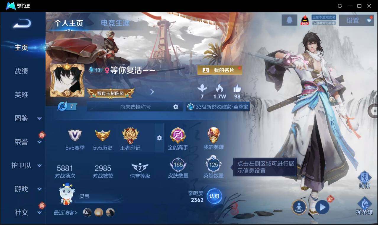 安卓Q-不可二次-贵6-125英雄-165皮肤-4传说-36史诗-52限定-7按键-贵族积分14425