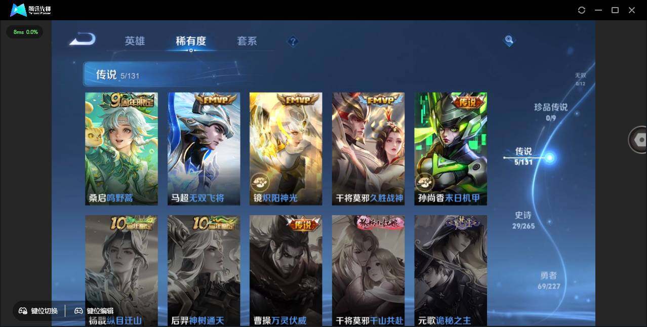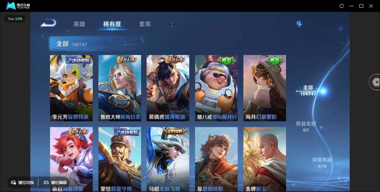 安卓Q-有二次-贵6-125英雄-139皮肤-5传说-32限定-29史诗-3按键