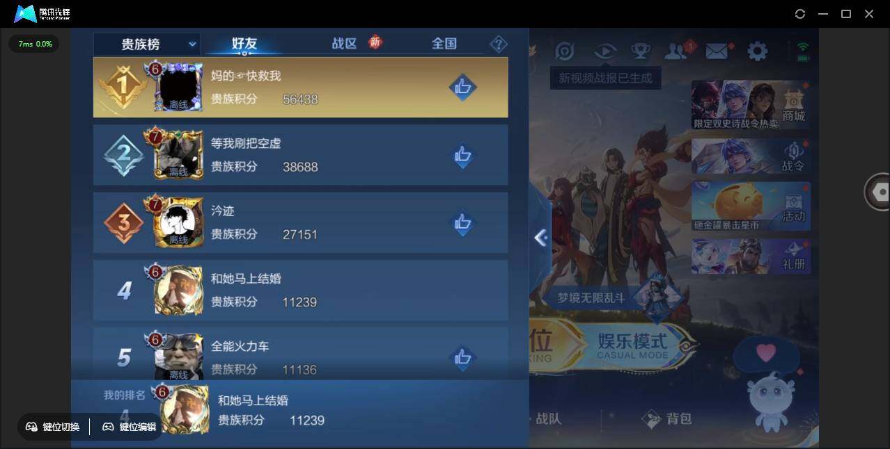 【W4354】安卓Q-有二次-贵6-125英雄-139皮肤-5传说-32限定-29史诗-3按键-841朵花花-精品小号FMVP无双飞将.炽阳神光.久胜战神.末日机甲.魅语.水晶猎龙者.街头霸王-7印记-贵族积分11239-营地ID:1739839160