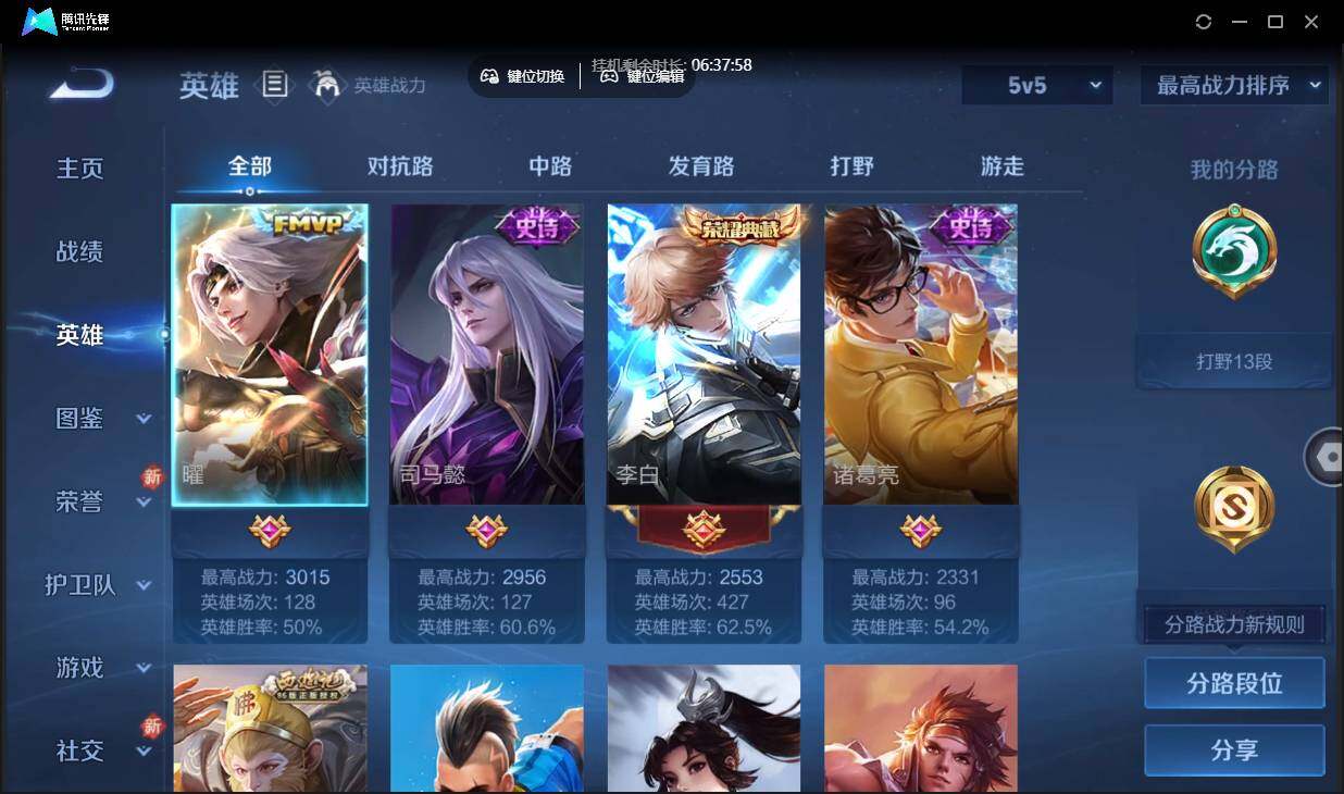 【W4349】【亮点:1.9k场次鸣剑曳影开局号】营地ID:1895899577【热门:云鹰飞将 大圣娶亲 凤凰于飞 孙行者】安卓q-无二次-贵6-79英雄-45皮肤-1典藏-1传说-18限定-贵族积分1.5w