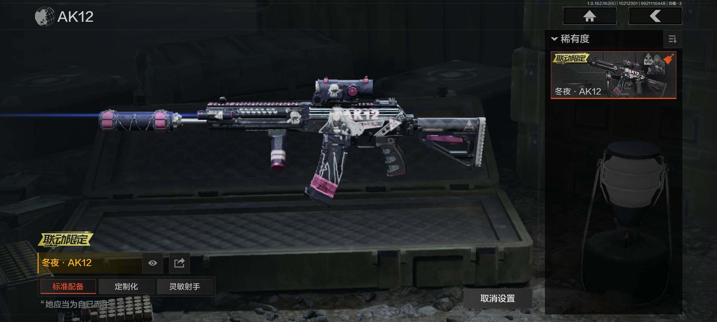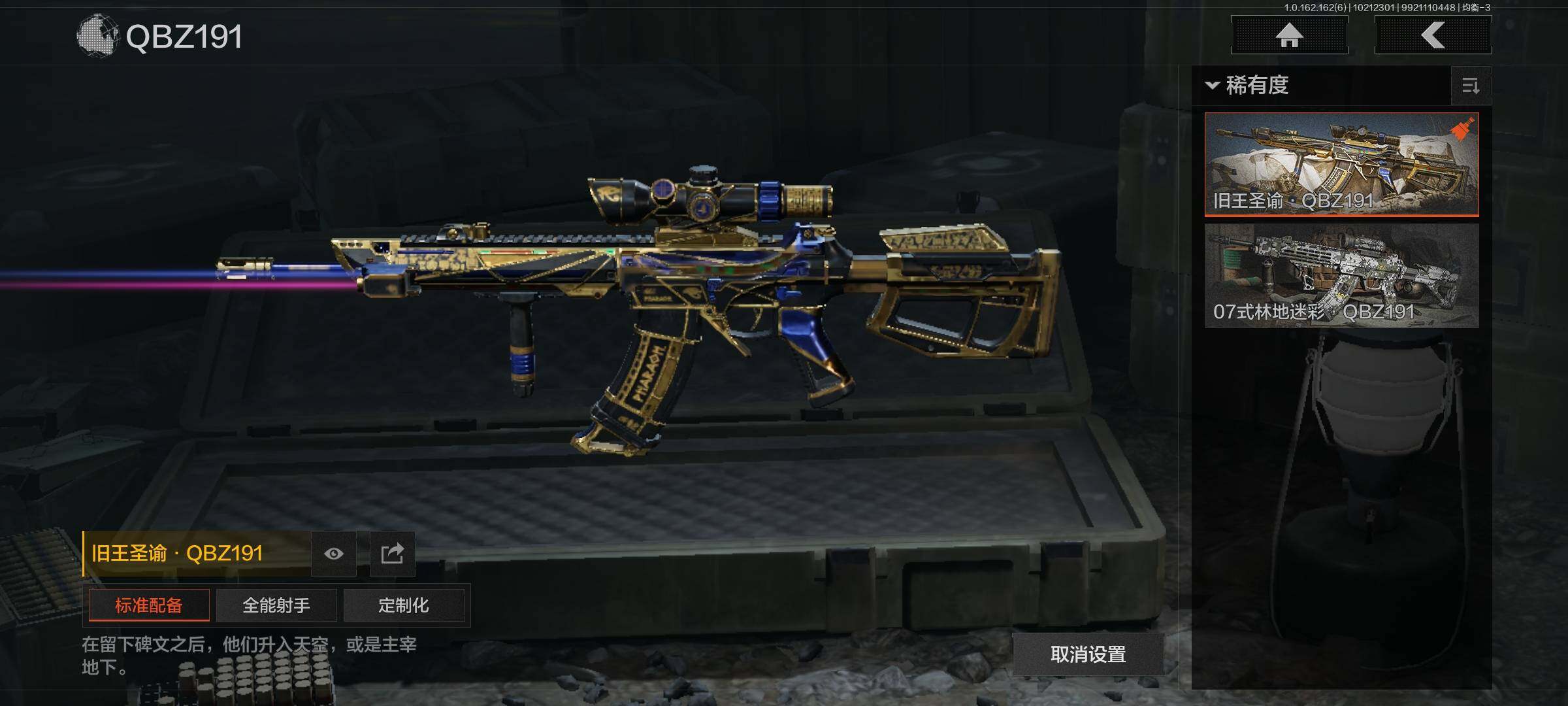 【金色枪皮】冰河碎影·MK14,冬夜·AK12,利齿风暴·MPX,旧王圣谕·QBZ191,伦琴幻影·FAL,旧王圣谕·VSS,告丧夜曲·AR57,告丧夜曲-AUG