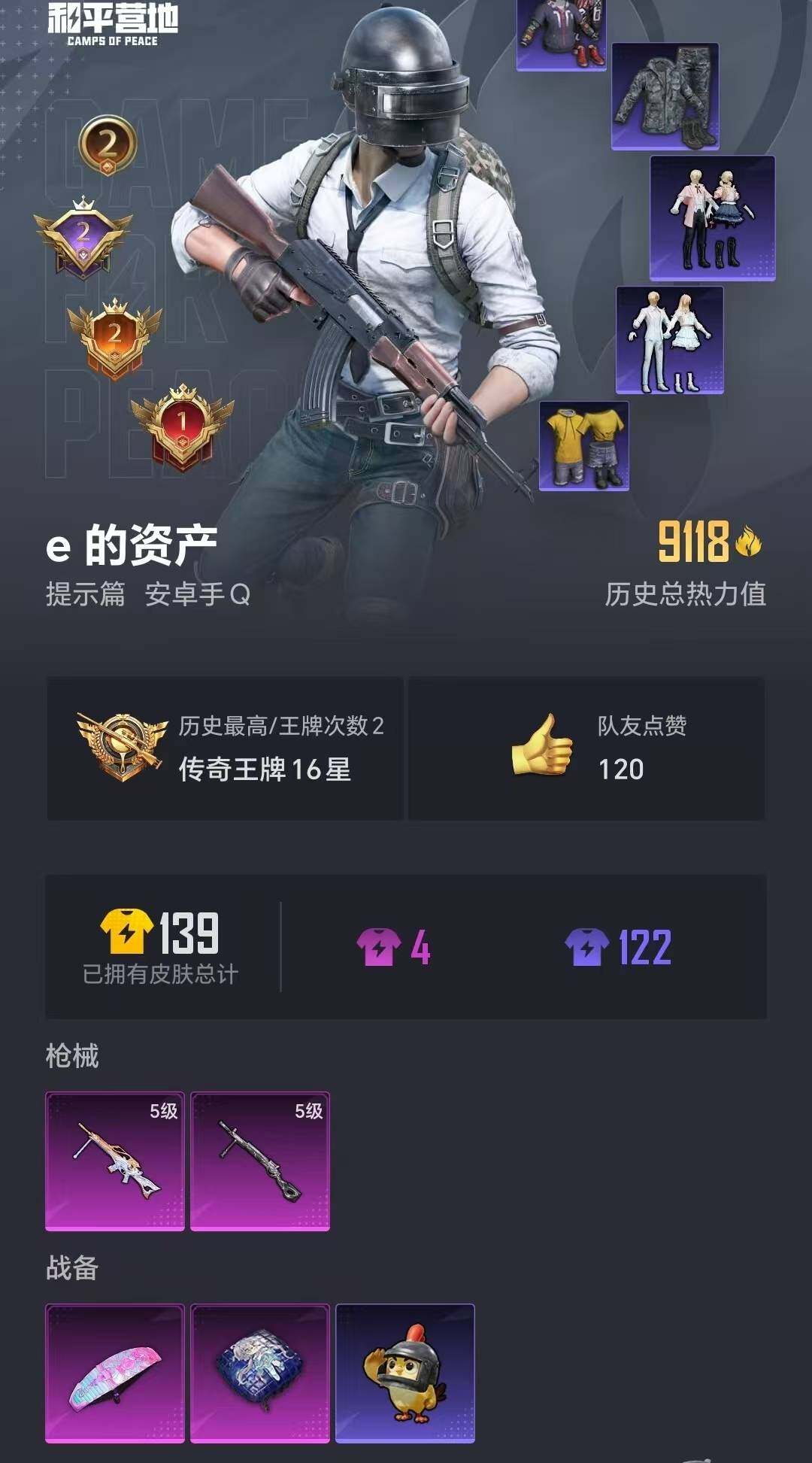26套装/枪械2/装备45/战备27/王牌印记2/热力值9118/五级DP-2