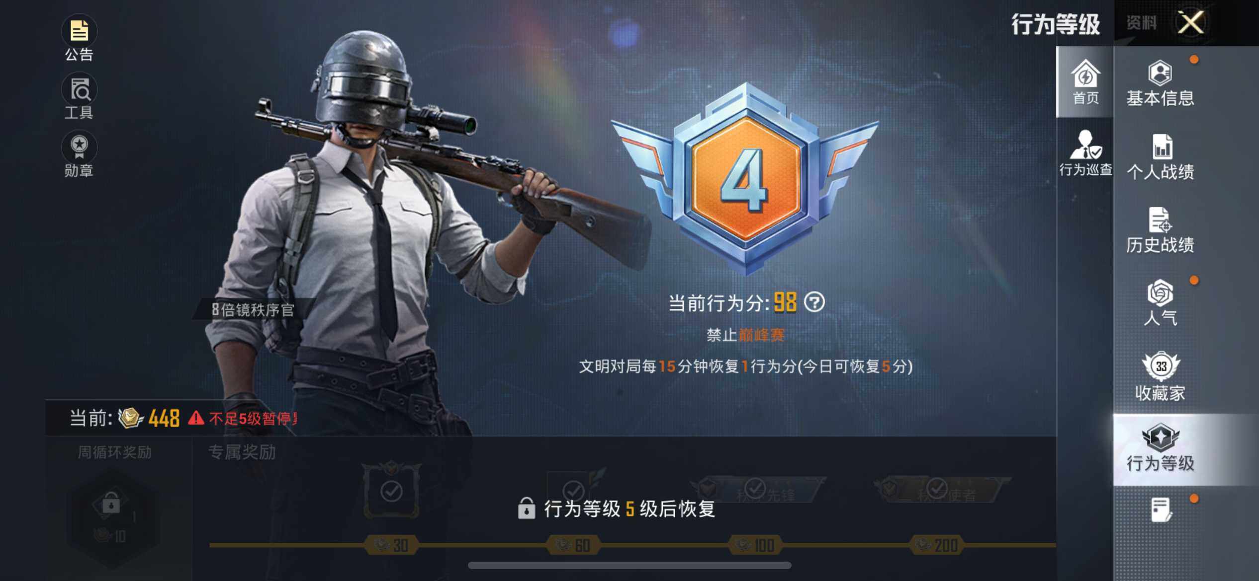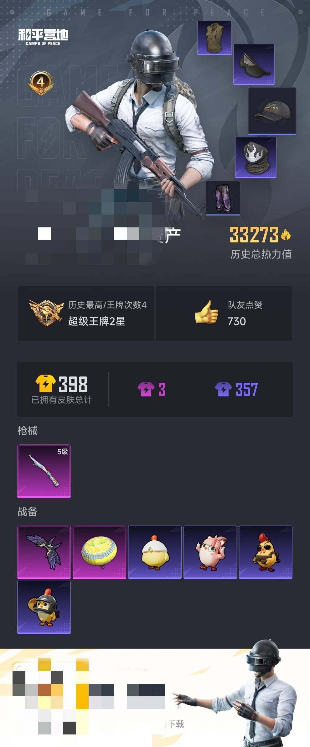 106套装/枪械1/装备89/战备89/王牌印记4/热力值33273/五级Kar98K-巳巳如意