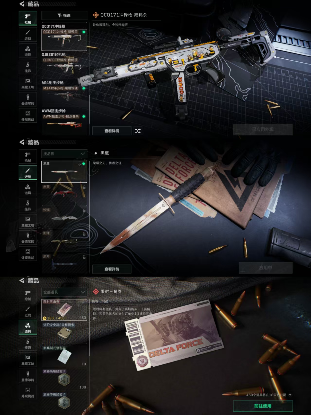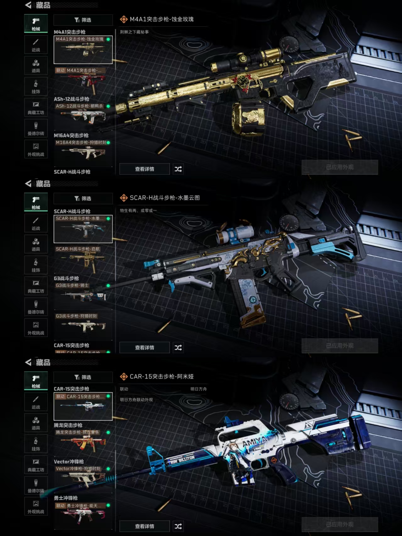 【枪皮】M4A1突击步枪-粉色涂装 M4A1突击步枪-高雅黑 M4A1突击步枪-海色 M4A1突击步枪-阿米娅 M4A1突击步枪-黑金玫瑰 QBZ95-1突击步枪-海浪 QBZ95-1突击步枪-海色 K416突击步枪-几何迷彩 K416突击步枪-高雅黑 M16A4突击步枪-山林猎人 M16A4突击步枪-竞赛选手 M