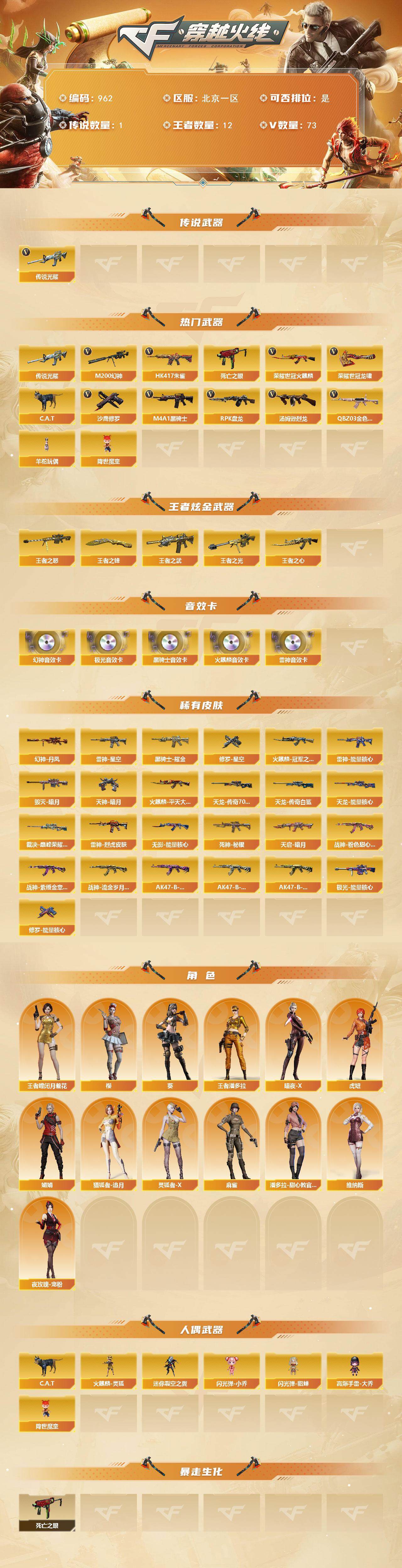 北京一区-73V-12王者-0炫金【传说武器】:传说光耀【热门武器】:传说
