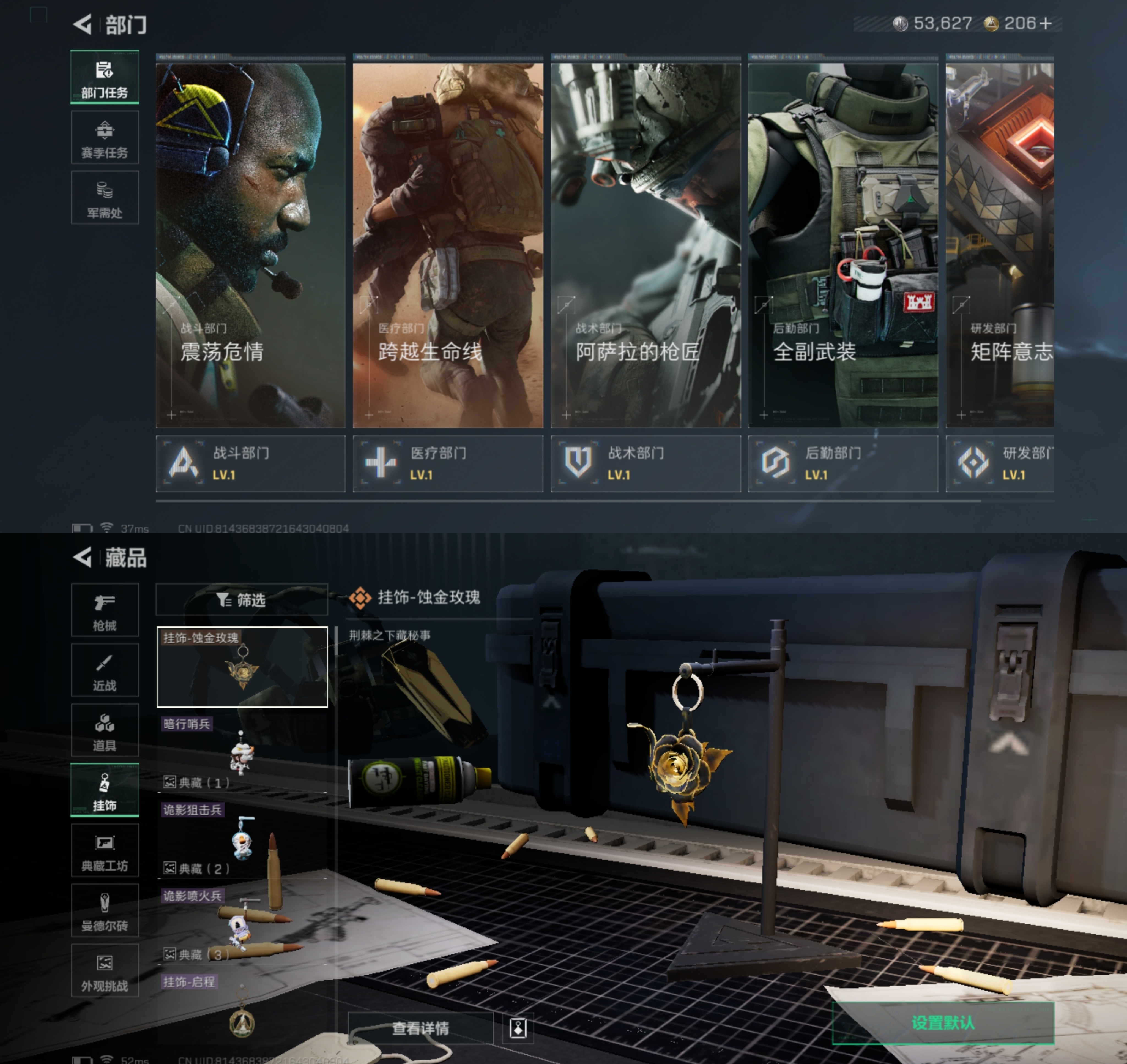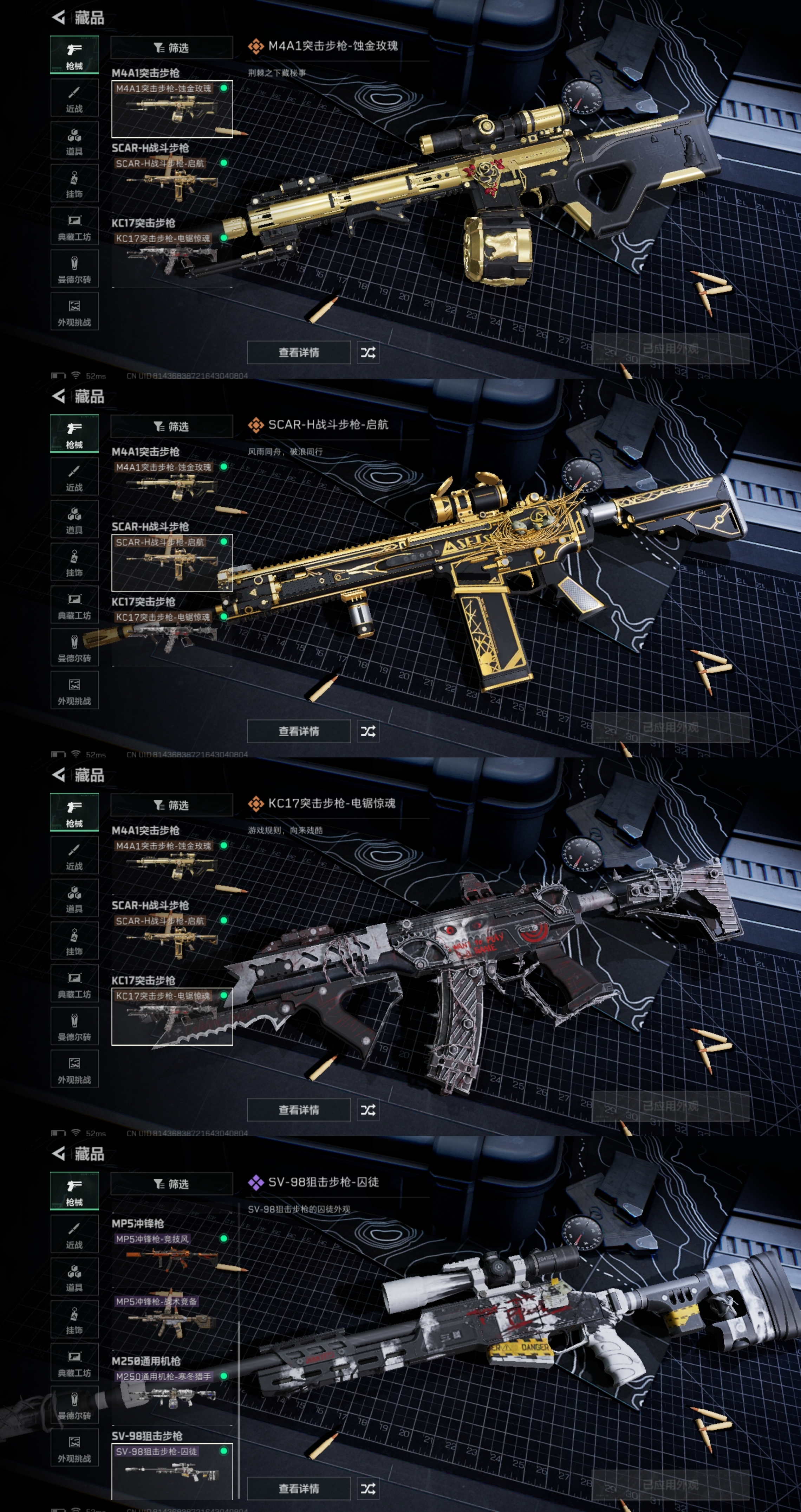 DD427【1红皮-蚀金玫瑰+1金皮-电锯惊魂】烽火等级42 总资5.5M 哈夫币53627K 安Q区三端互通 烽火段位-钻石V 特勤处满级【2干员皮肤】红狼-蚀金玫瑰 红狼-电锯惊魂【3传说枪皮】M4A1突击步枪-蚀金玫瑰 SCAR-H战斗步枪-启航 KC17突击步枪-电锯惊魂【4史诗枪皮】MP5-冲锋枪-竞技风 MP5-冲锋枪-战术竞备 M250-通用机枪-寒冬猎手 SV-98狙击步枪