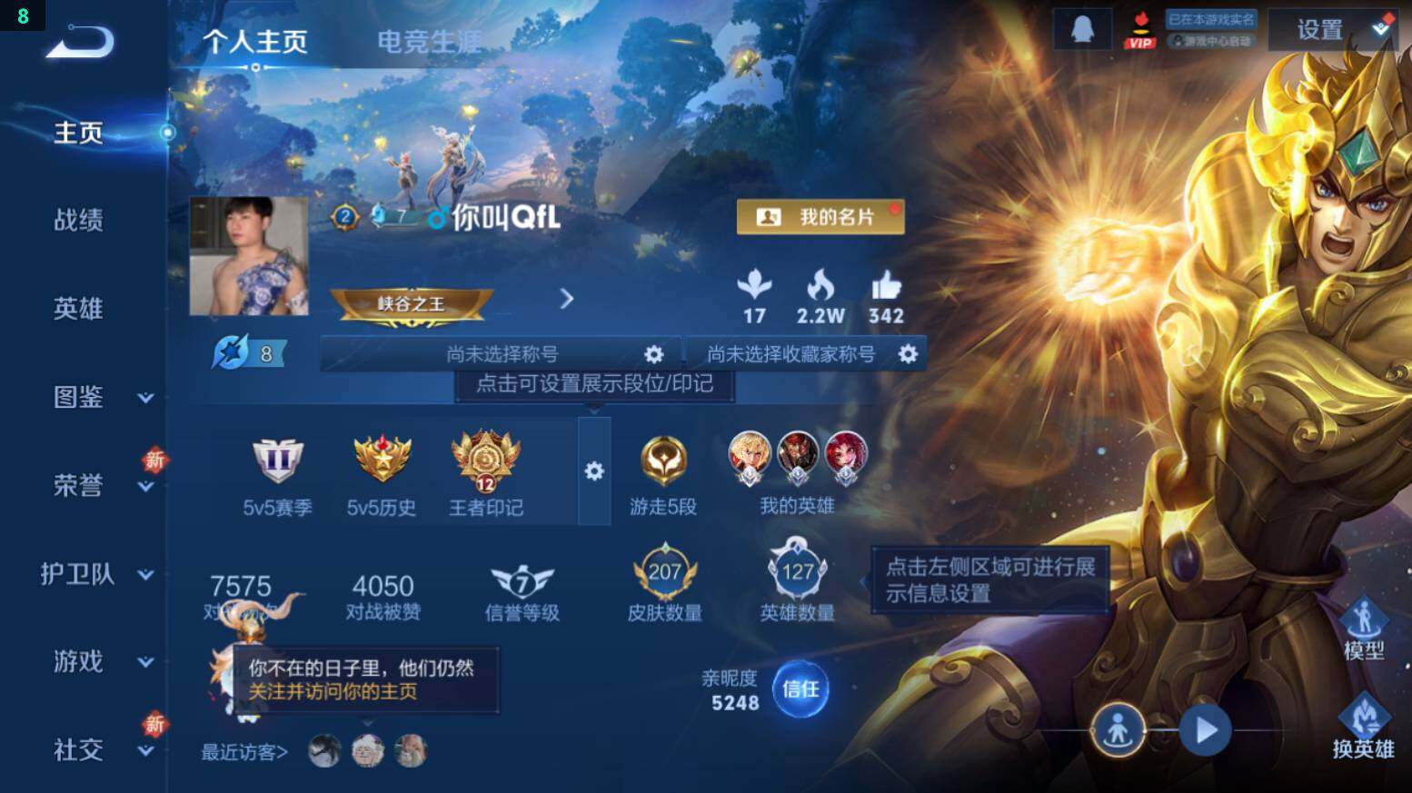 营地账号:1/安卓Q-V6-永恒钻石II段位-127英雄-207皮肤-6传说-63史诗