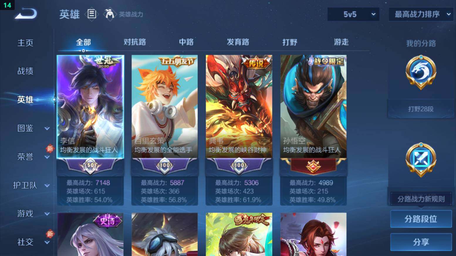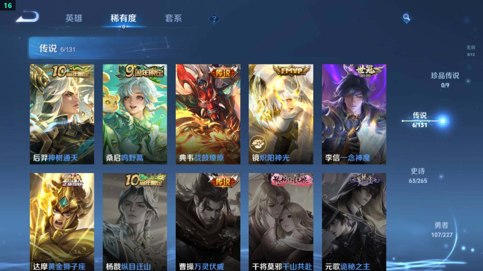 安卓Q-V6-永恒钻石II段位-127英雄-207皮肤-6传说-63史诗【全