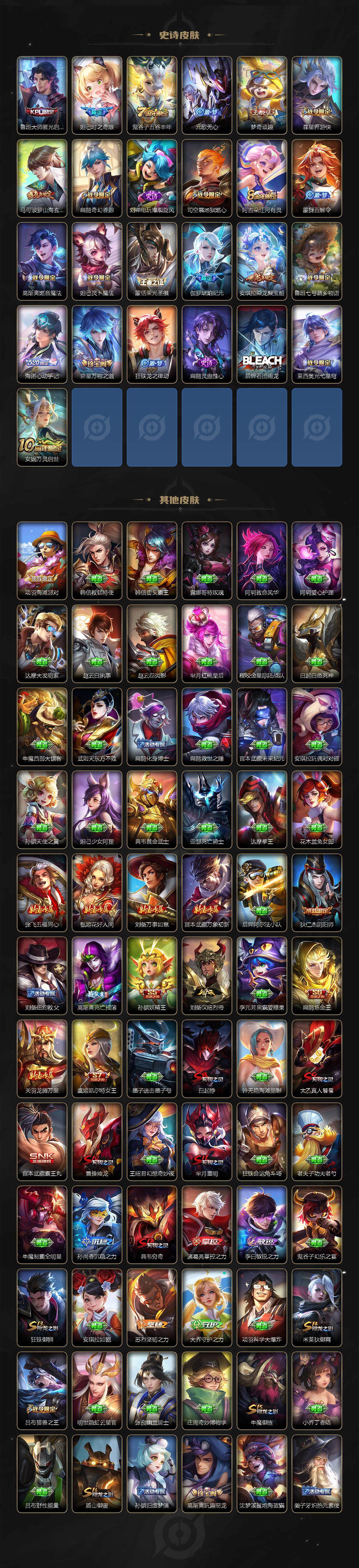 【英雄全皮】:扁鹊全皮,刘邦全皮,狂铁全皮,李信全皮,猪八戒全皮,鲁班大师全皮,蒙恬全皮,司空震全皮,金蝉全皮,影全皮,海诺全皮