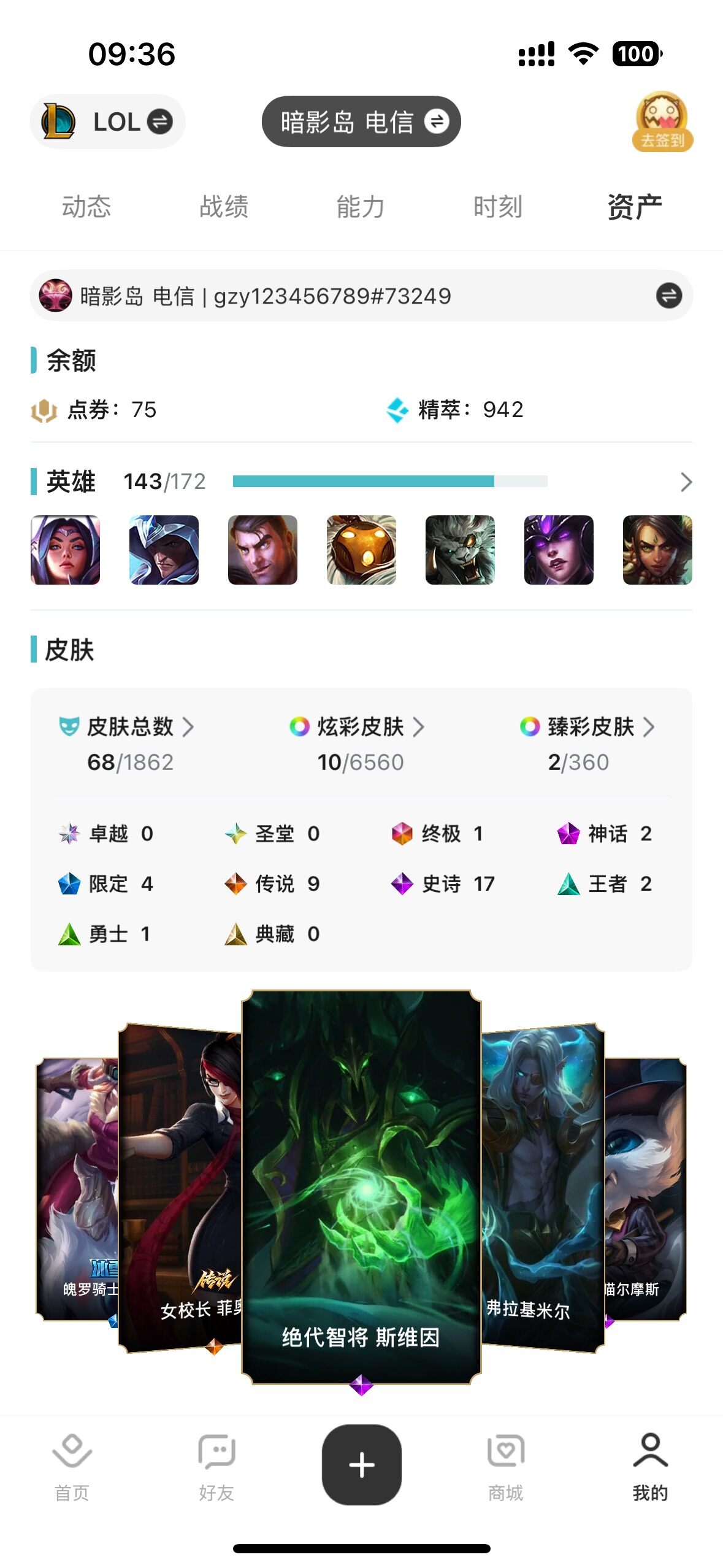 可二次【店主推荐捡漏号!可直接换绑】未定级段位-143英雄-68皮肤-10炫彩-1终极-2神话-4限定-9传说-17史诗