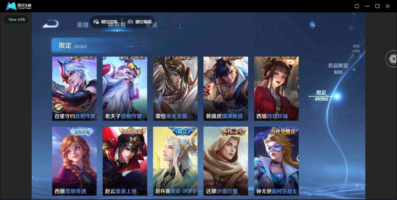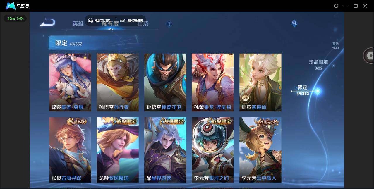 【限定皮肤】:姜子牙天穹之誓,狄仁杰阴阳师,赵云皇家上将,高渐离玩趣恶龙,钟无艳超时空战士,甄姬落雪兰心,马可波罗暗影游猎,狄仁