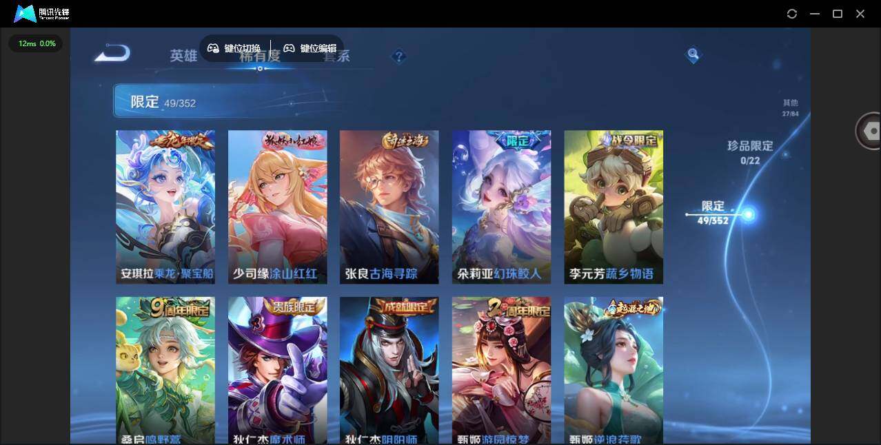 【限定皮肤】:蒙犽顽岩魄,蔡文姬夏日便利店,虞姬夏日便利店,姜子牙天穹之誓,狄仁杰阴阳师,赵云皇家上将,孙尚香蔷薇恋人,甄姬游园惊梦,