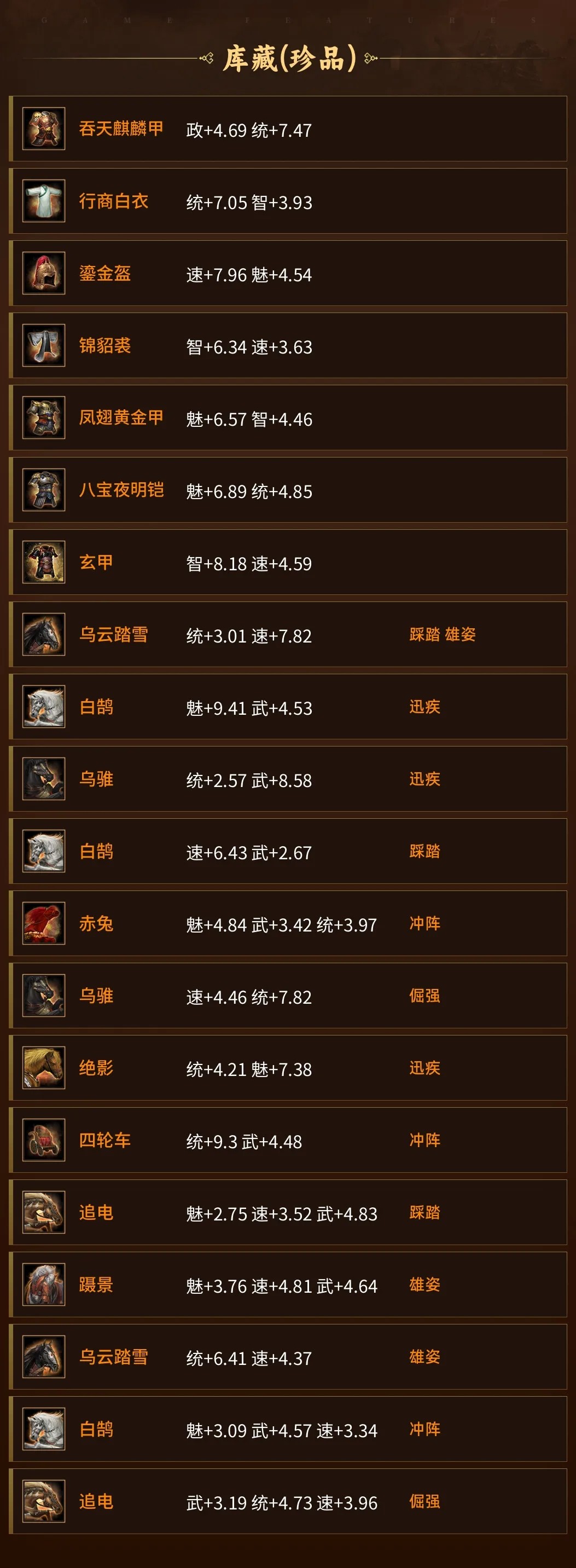 没时间玩了,各种强势满红队伍,直接最低价速出。装备拉满:三匹践踏马雄烈胆略,天公道纲兴师