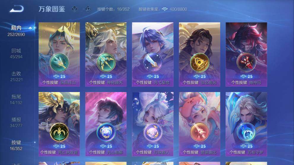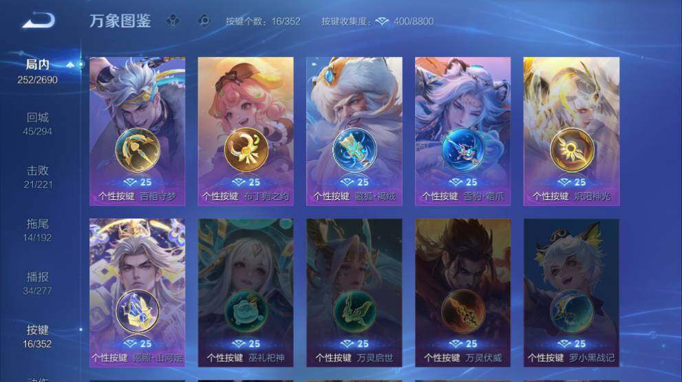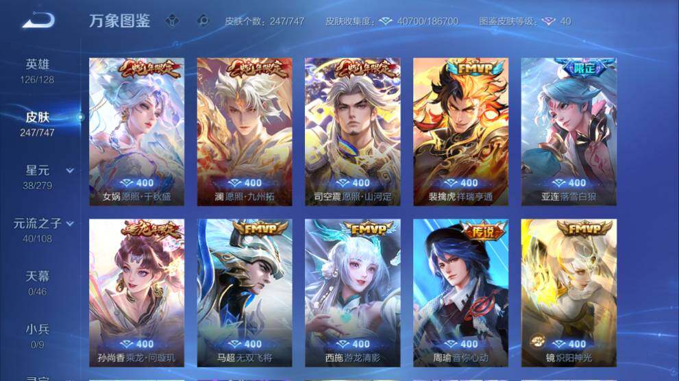 安卓Q-V8-247皮肤-1典藏皮肤-1无双-4珍品传说-19传说-77史诗-16按键-3300星币