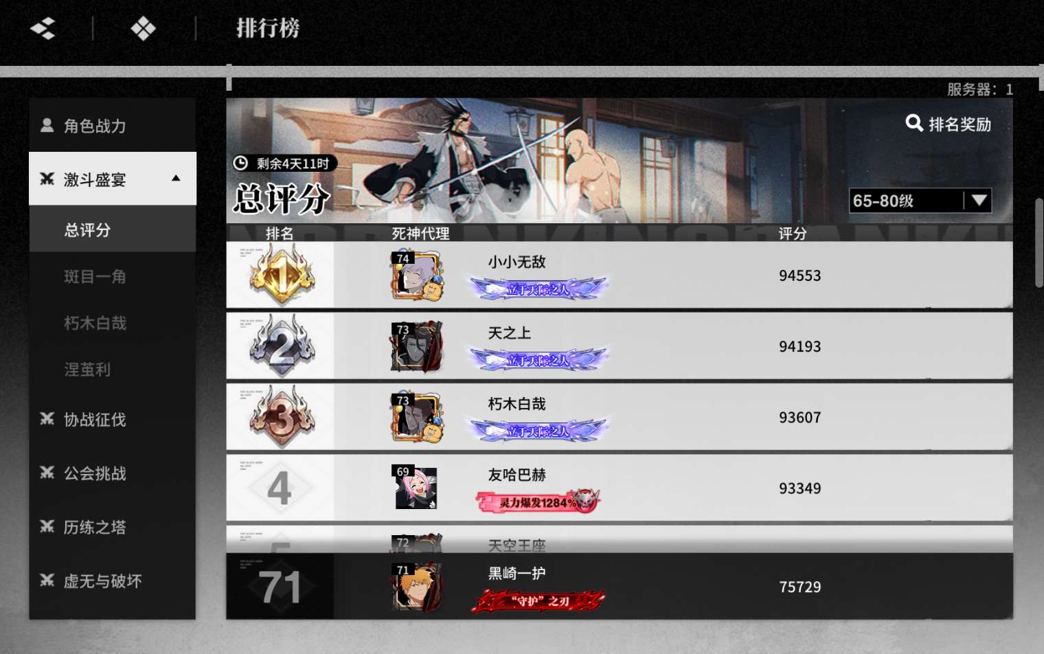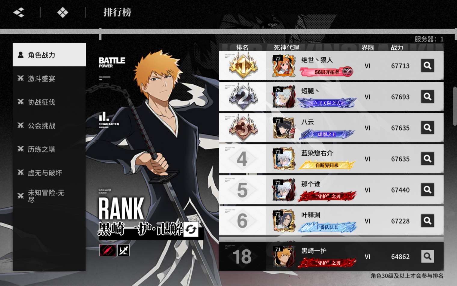 4399服 654一户,123蓝染,133光头,001小白,112店长,112白哉68抽限定,