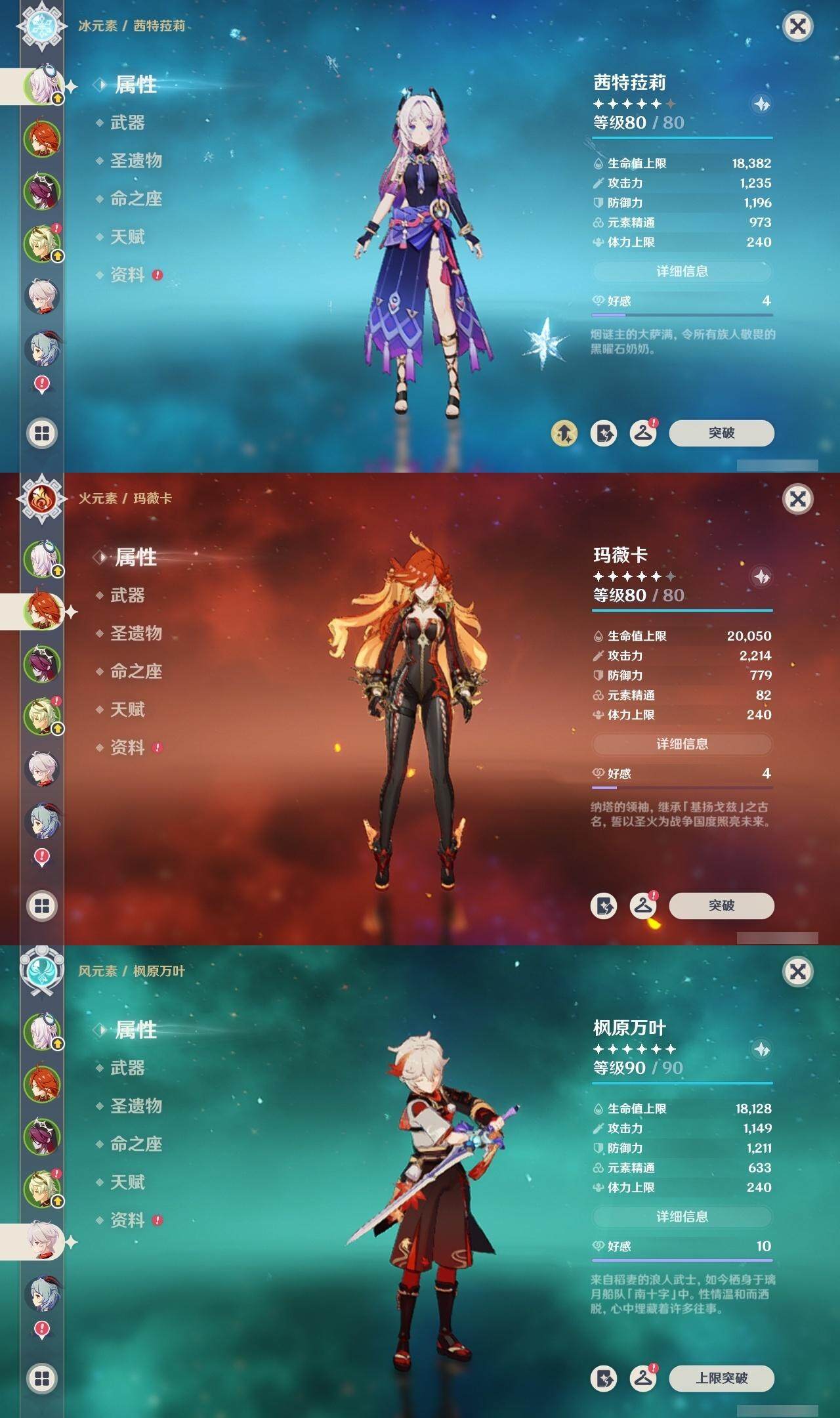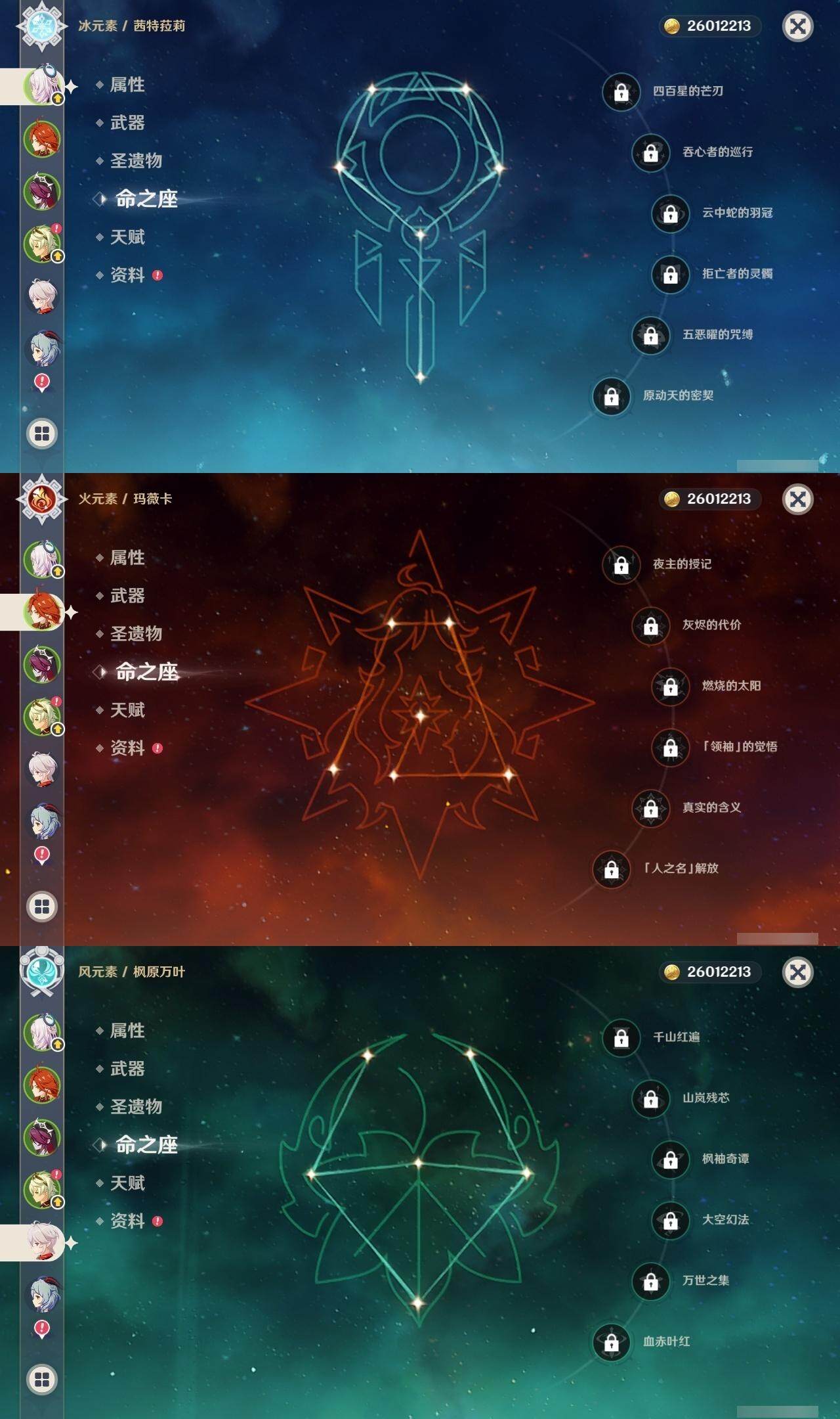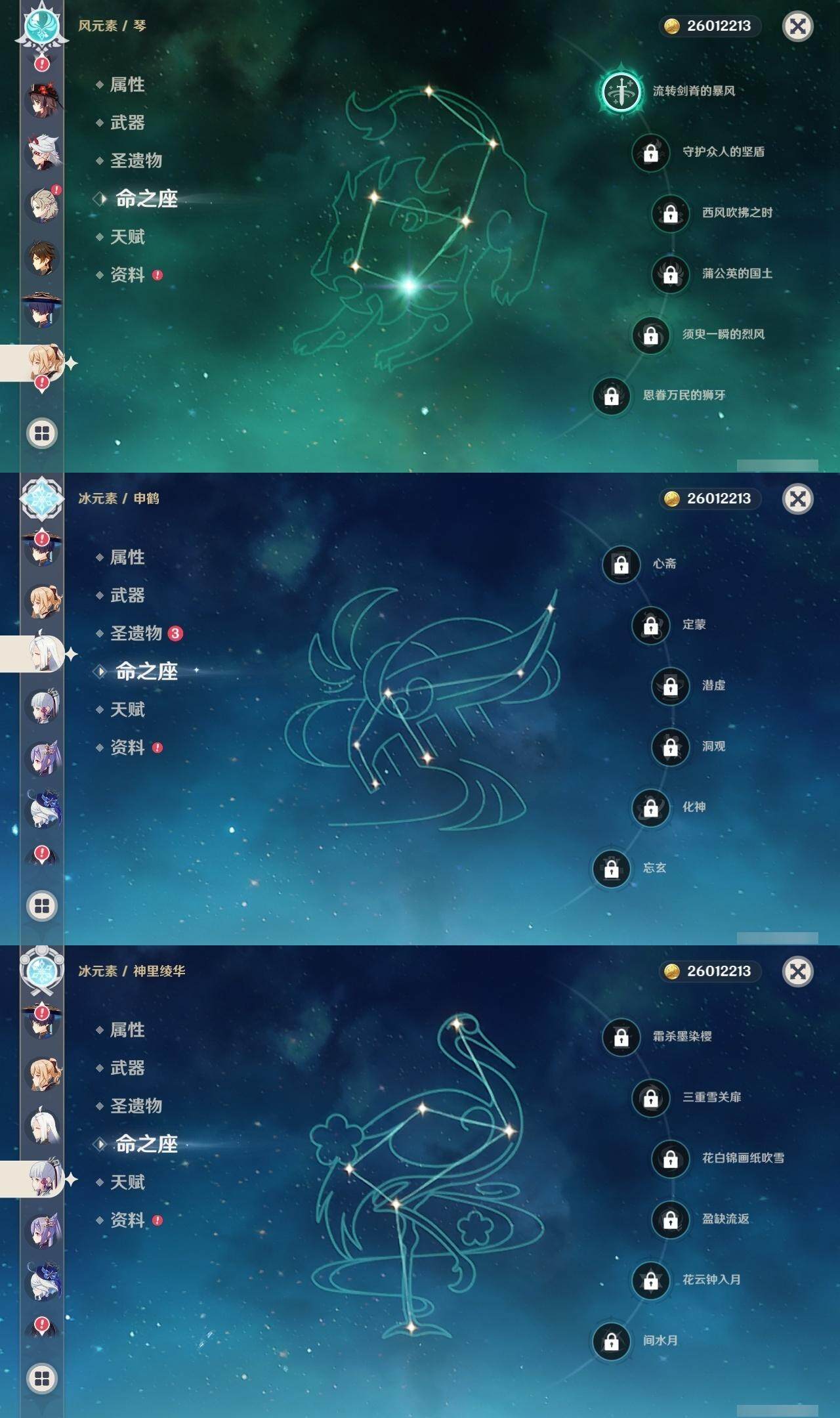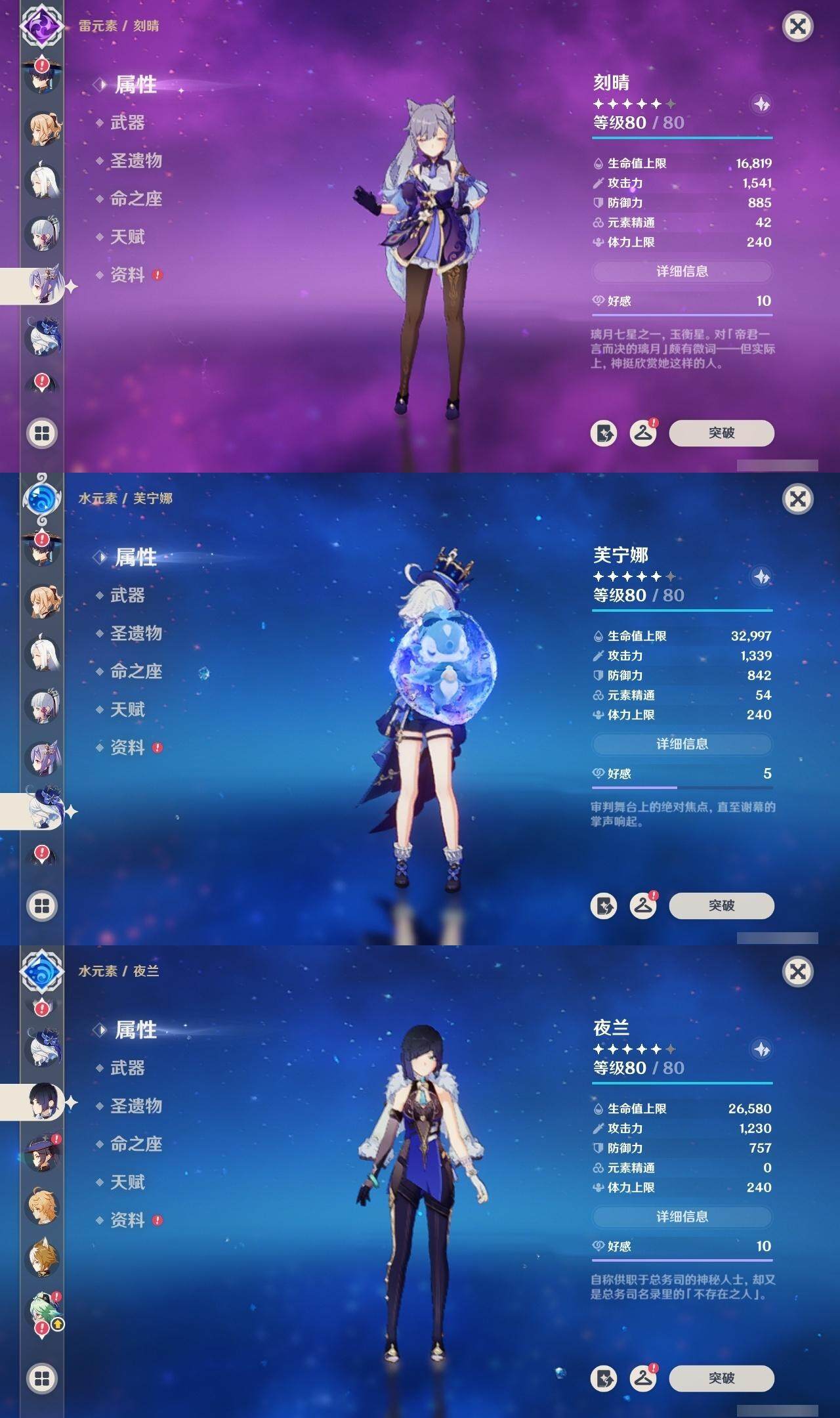 0命芙宁娜,0命迪希雅,0命流浪者,0命纳西妲,0命夜兰,0命申鹤,0命荒泷一斗,0命雷电将军,0命枫原万叶,0命神里绫华,0命钟离,1命胡桃,0命甘雨,0命达达利亚,0命阿贝多,2命刻晴,1命七七,1命琴,1命莫娜,2命迪卢克,0命玛薇卡,0命茜特菈莉,精1阿莫斯之弓,精1天空之刃,精1风鹰剑,精1天空之傲