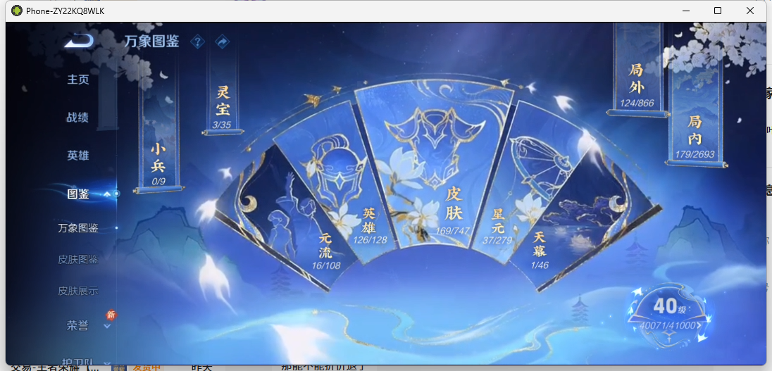 【14519623】[14519623]实名: 可修改 性别: 男号 贵族等级: V6 英雄数: 126 皮肤数: 169 荣耀水晶: 弑枪猎影 星传说: 幽冥之眼 传说皮: 地狱之眼,神树通天 限定皮: 李小龙,游园惊梦,梁祝,朱雀志,武陵仙君,高山流水,五谷丰年,诗剑行,山海·玄木吟 亮点: 【 精品号手慢无】典藏弑枪猎影 热门限定皮武陵仙君诗剑行山海玄木吟
